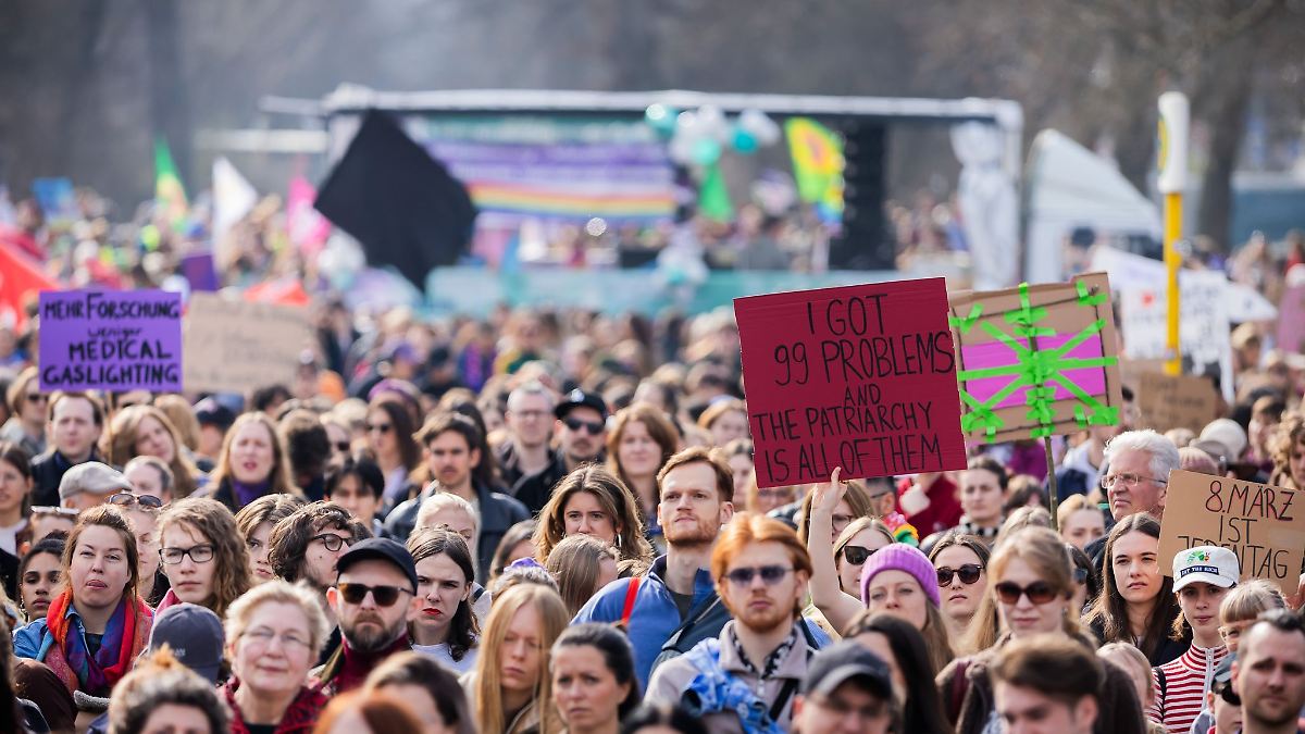 Tausende von Menschen demonstrieren am Frauentag in Berlin für Gleichberechtigung. Sie prangern Benachteiligung und Gewalt gegen Frauen an - und fordern Solidarität mit dem Widerstand im Iran.