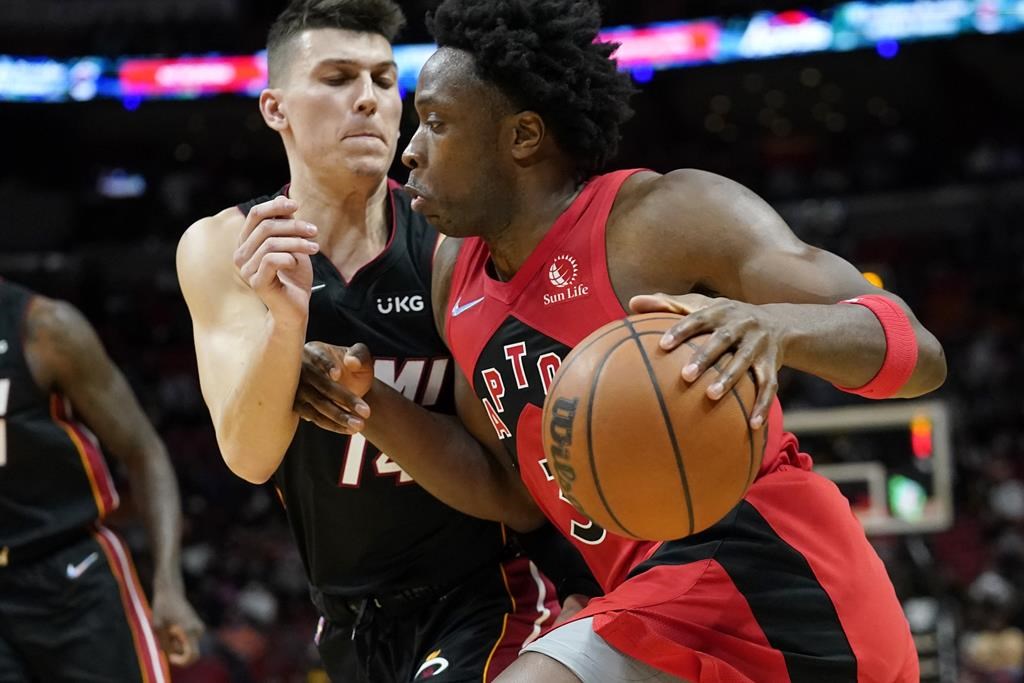 MIAMI (AP) — Fred VanVleet hit two 3-pointers in the third overtime and the Toronto Raptors outlasted the Miami Heat 124-120 on Saturday night.