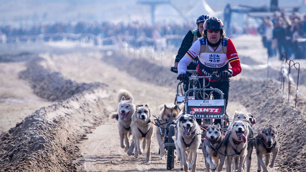 Über den Strand von Usedom jagen Huskys mit ihren Gespannen. Dieter Hallervorden und andere Prominente lassen sich von den Hunden ziehen. Das Rennen "Baltic Lights" dient einem guten Zweck.