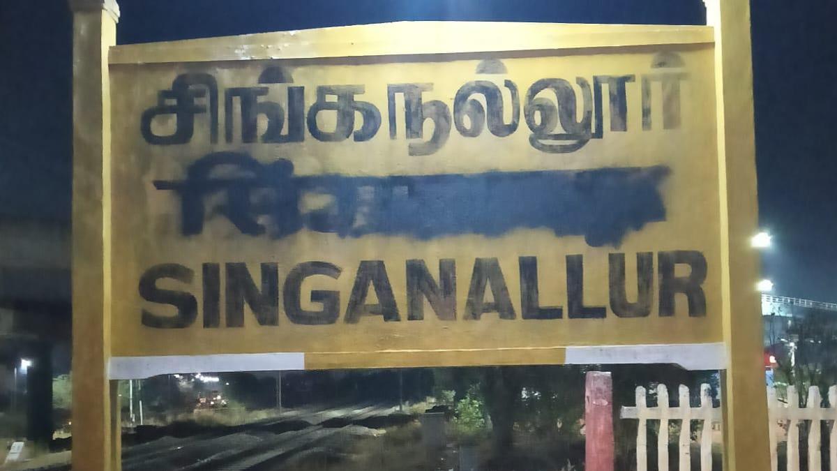 Hindi letters defaced at Singanallur railway station in Coimbatore