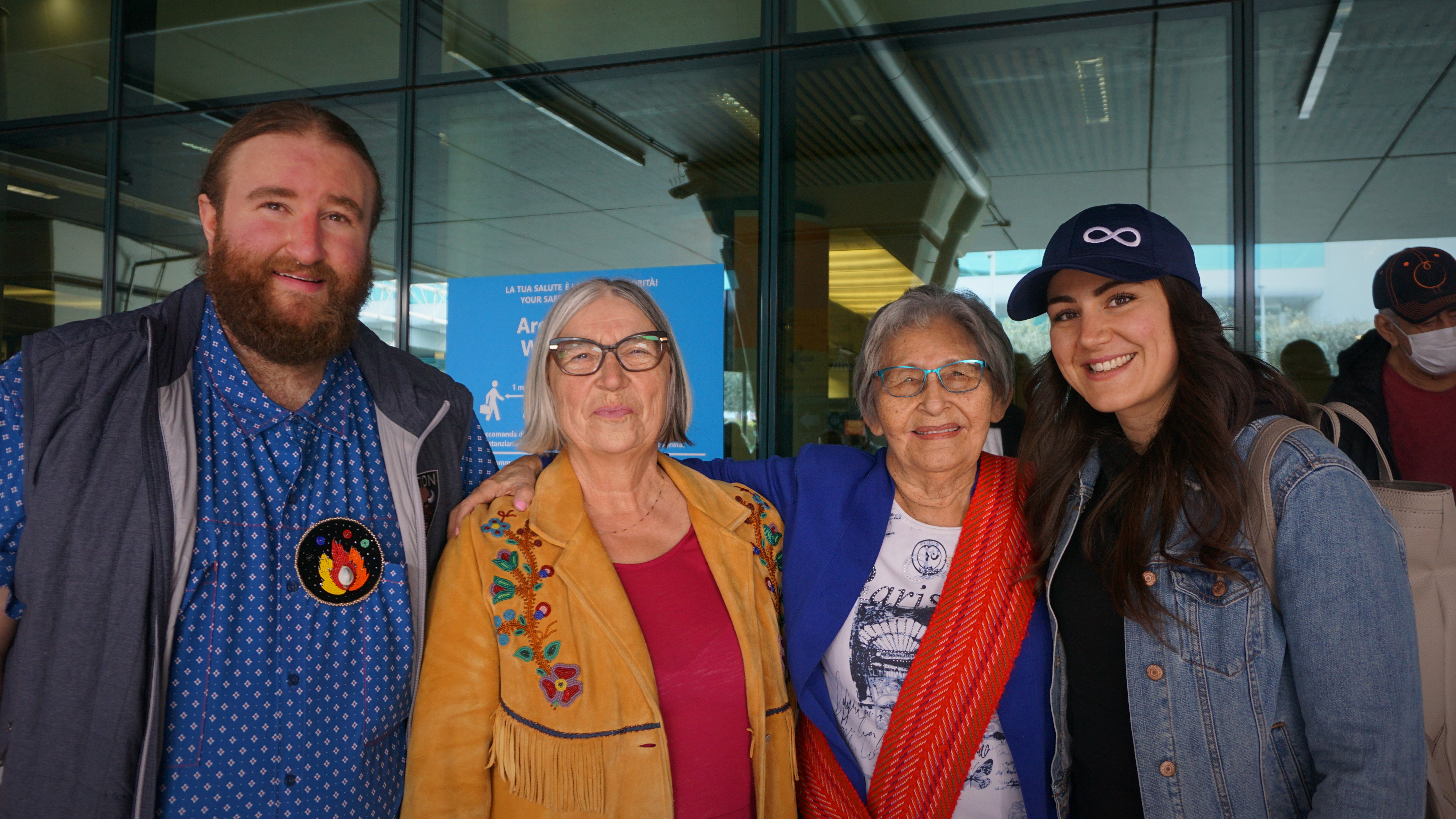 Outside the arrivals terminal at Rome’s Leonardo da Vinci International Airport, Métis Elder Angie Crerar stood up from her wheelchair right away when asked for an interview and a photo.