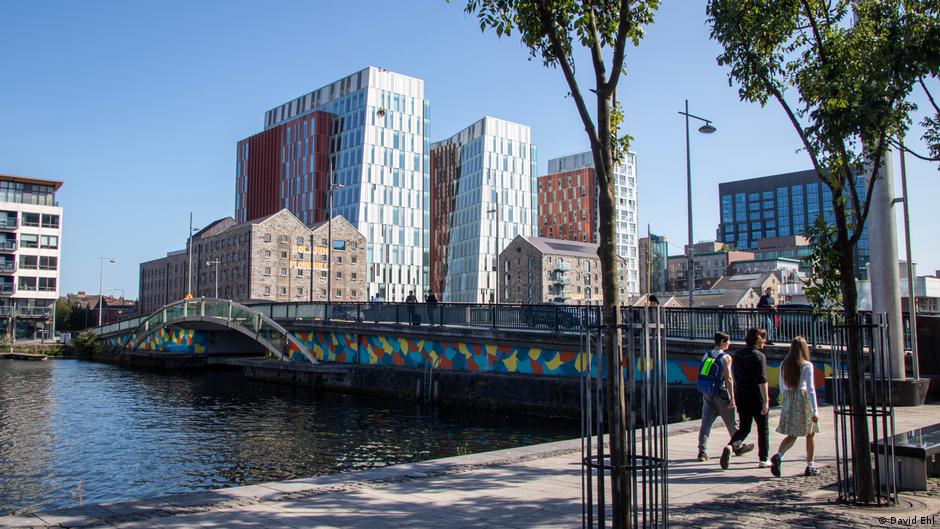 Facebooks Hauptquartier für Europa, Nahost und Afrika befindet sich am Grand Canal Square in Dublin - doch nicht mehr lange: Zwei Kilometer weiter südlich lässt der Tech-Riese einen neuen Campus für bis zu 7000 Mitarbeitende bauen. Der Konzern bekennt sich in Pressestatements zum Standort Irland und verspricht, die Belegschaft weiter zu vergrößern. Neben Facebook betreiben rund 800 weitere US-Konzerne wichtige Niederlassungen in Irland, investieren dort jedes Jahr Milliarden und beschäftigen 180.000 Menschen - ein wichtiger Wirtschaftsfaktor für das kleine EU-Land.