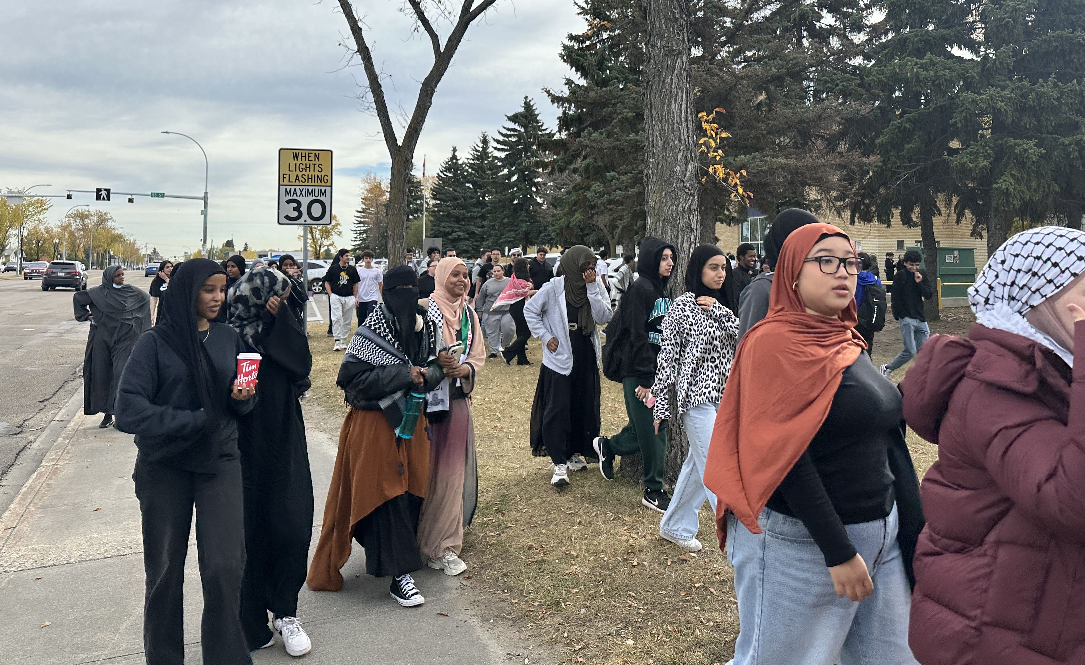 On Monday in Edmonton, about a hundred pro-Palestinian students at north Edmonton’s Queen Elizabeth High School held a peaceful walkout and protest.