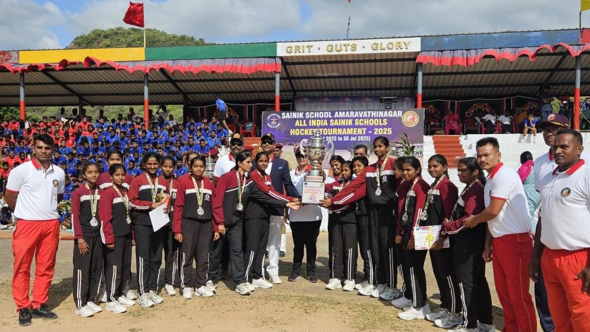 Sainik School Kalikiri's under-17 girls' hockey team secures second place in national tournament, praised for academic and sports excellence.