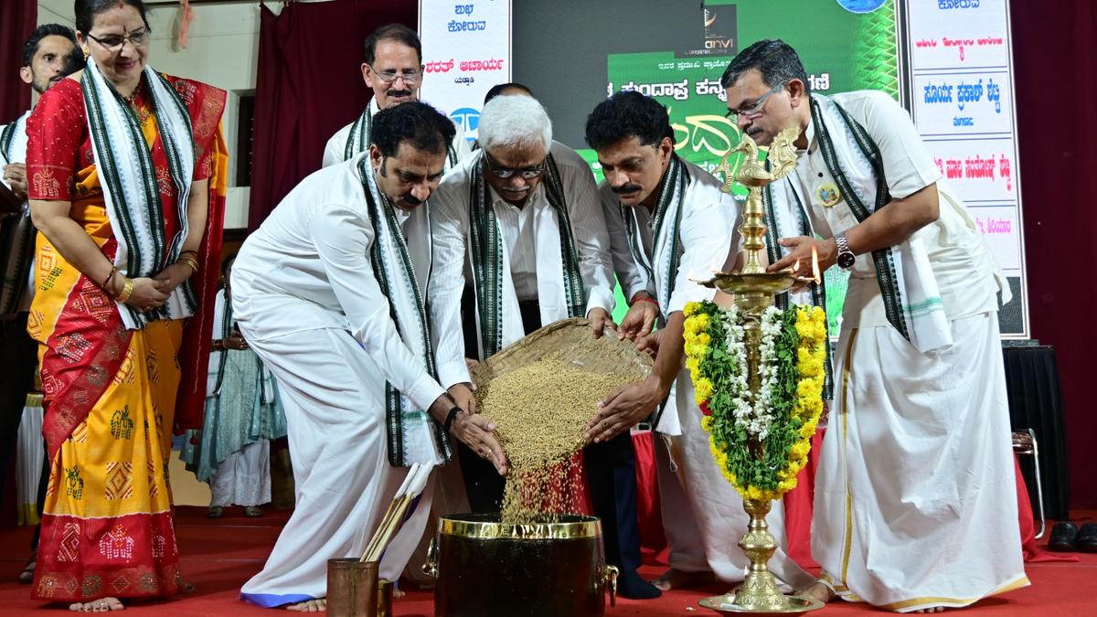 Inaugurating the stage programme later, former Vijaya Bank Deputy General Manager Halady Shantharama Shetty said his family members continue to speak Kundapra Kannada despite residing in different parts of the country. The dignitaries inaugurated the event by pouring paddy to kalasige in the traditional manner practised in Kundapur region.