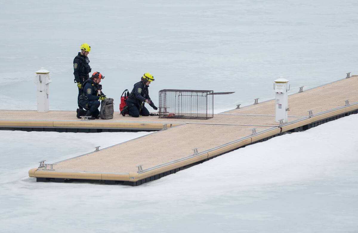 Une cage avec de la nourriture à l’intérieur a été installée à proximité de l’animal, mais, jusqu’ici, l’odeur du festin ne semble pas l’avoir alléché.