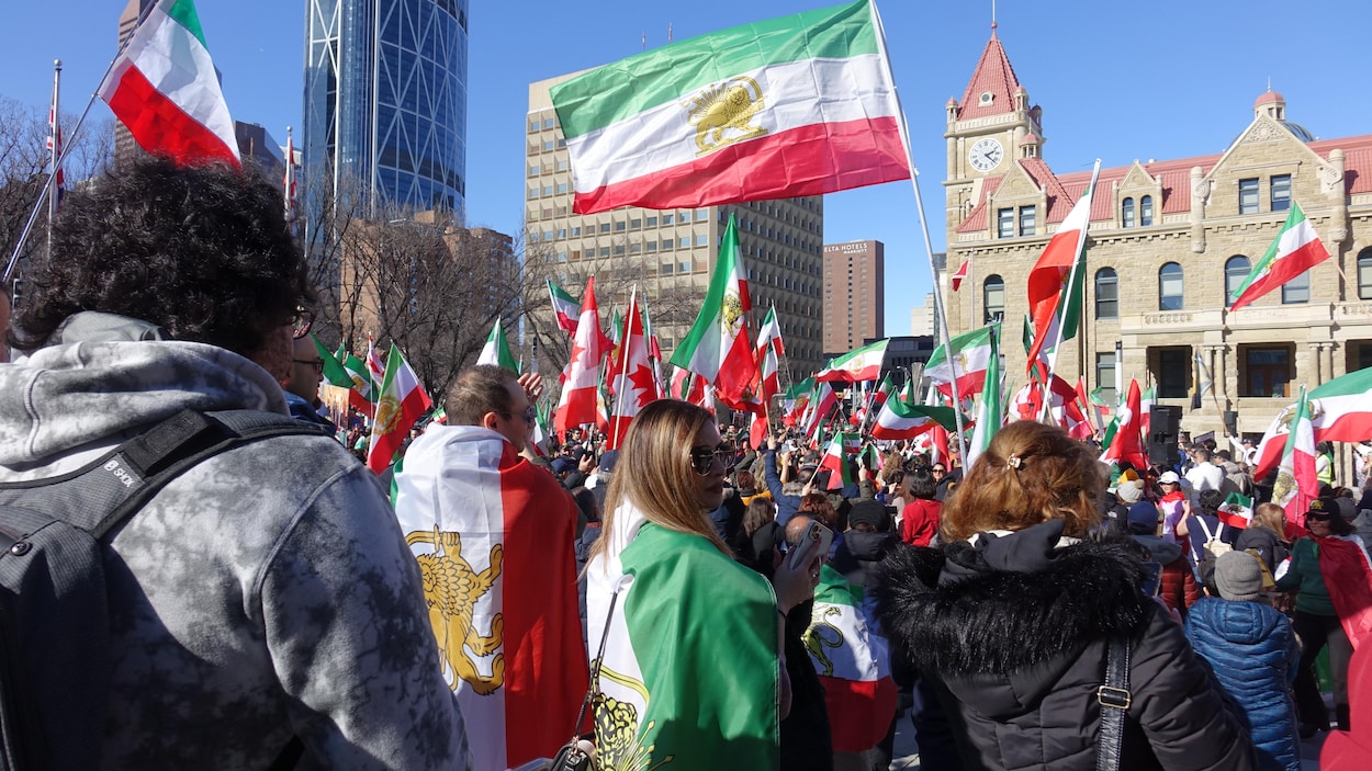 Au lendemain de la mort de l'ayatollah Ali Khamenei, guide suprême de la République islamique d’Iran, les communautés iraniennes se sont rassemblées dans les métropoles de l’Alberta. Les agents du Service de police de Calgary qui était sur place ont estimé qu’environ 2000 personnes étaient présentes au rassemblement de dimanche après-midi devant l’hôtel de ville. Dans une ambiance festive, des dizaines de manifestants brandissaient le drapeau du lion solaire, emblème de l’Iran avant la révolution islamique. C’est notamment le cas de Ali reza Haji Hosein qui portait le drapeau sur ses épaules. On souhaite que le régime [actuelle] capitule, dit-il. Une transition sécuritaire entre ce régime et le prochain régime est importante pour nous. On supporte notre leader de transition, le roi Reza Pahlavi, on espère qu’il va intervenir davantage afin d’aider les gens à renverser et neutraliser le régime.