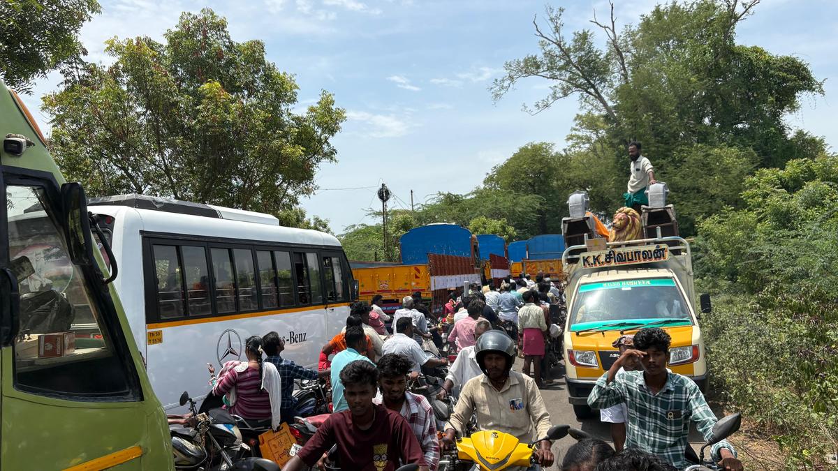 Long queue of vehicles outside RTO office in Mannargudi causes traffic jam