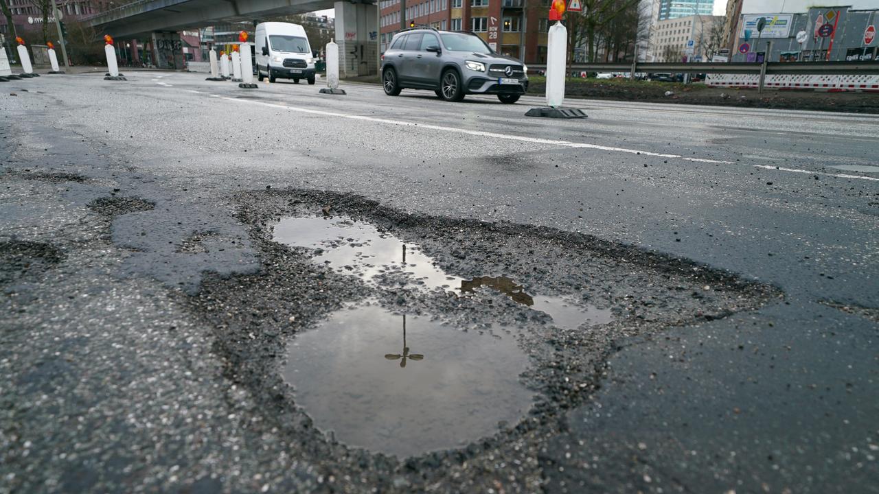 Frost und Tauwetter im Wechsel - der Winter hat Deutschlands Straßen zugesetzt. Einige Kommunen setzen auf KI zur Schadenserkennung und heißen Asphalt, um Schlaglöcher zu stopfen. Es gab einen Knall, das Auto sackte kurz ab, Sonja Fels war erschrocken. Sie bog auf einen Parkplatz ab und sah die Bescherung: der rechte Vorderreifen platt, die Felge beschädigt. Sonja Fels war in Düsseldorf in ein tiefes Schlagloch gefahren. Sie machte von dem Loch ein paar Fotos. "Während ich da stand, rumpelten weitere Autos hinein. Einem Wagen passierte das Gleiche, der hatte dann auch einen platten Reifen." Sie postete ihre Fotos auf Facebook - prompt meldeten sich sechs Betroffene: Sie alle hatten an dieser Stelle ihr Auto kaputtgefahren. Der lange Winter mit häufigem Wechsel zwischen Minus- und Plusgraden hat das Schlagloch-Problem auf deutschen Straßen verschärft. Das Problem: Tagsüber bei Plusgraden kann Niederschlag durch kleine Risse in den Straßenbelag eindringen. Nachts bei Minusgraden gefriert dieses Wasser, das Eis dehnt sich aus. "Tagsüber geht der Frost wieder raus, es bleiben Löcher zurück", sagt Olaf Neef von den Mönchengladbacher Straßenbetrieben. In Mönchengladbach sind sie mit mehreren Trupps beschäftigt, die Löcher zu stopfen. Sie setzen dabei auch auf eine neuartige Methode: Ein "Gussasphaltkocher" erhitzt das Material auf 230 Grad Celsius, dann wird es wie flüssiger Klebstoff in die Löcher gegossen. Straßenbaumeister Tim Wagner fährt mit seinen Kollegen durch die Straßen und flickt: