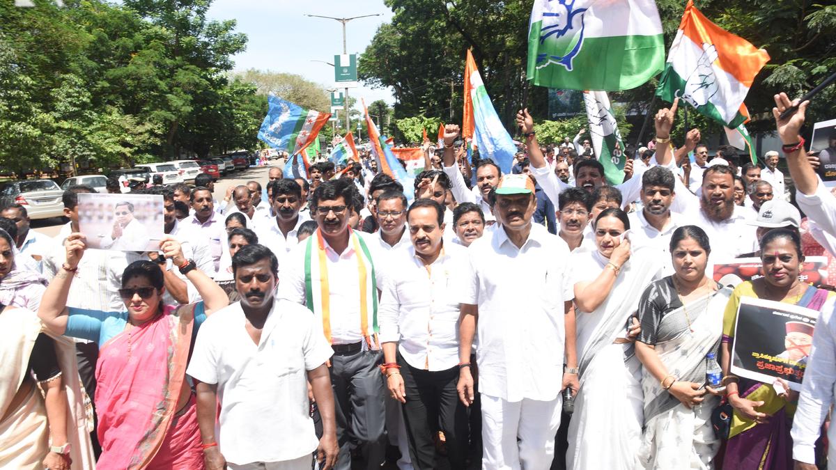 At a protest organised by the Dakshina Kannada District Congress Committee against Mr. Gehlot for granting sanction to prosecute Chief Minister Siddaramaiah in the alleged MUDA scam, Mr. D’Souza started his speech by raising the slogan of “Gehlot get lost, Gehlot go back”.
