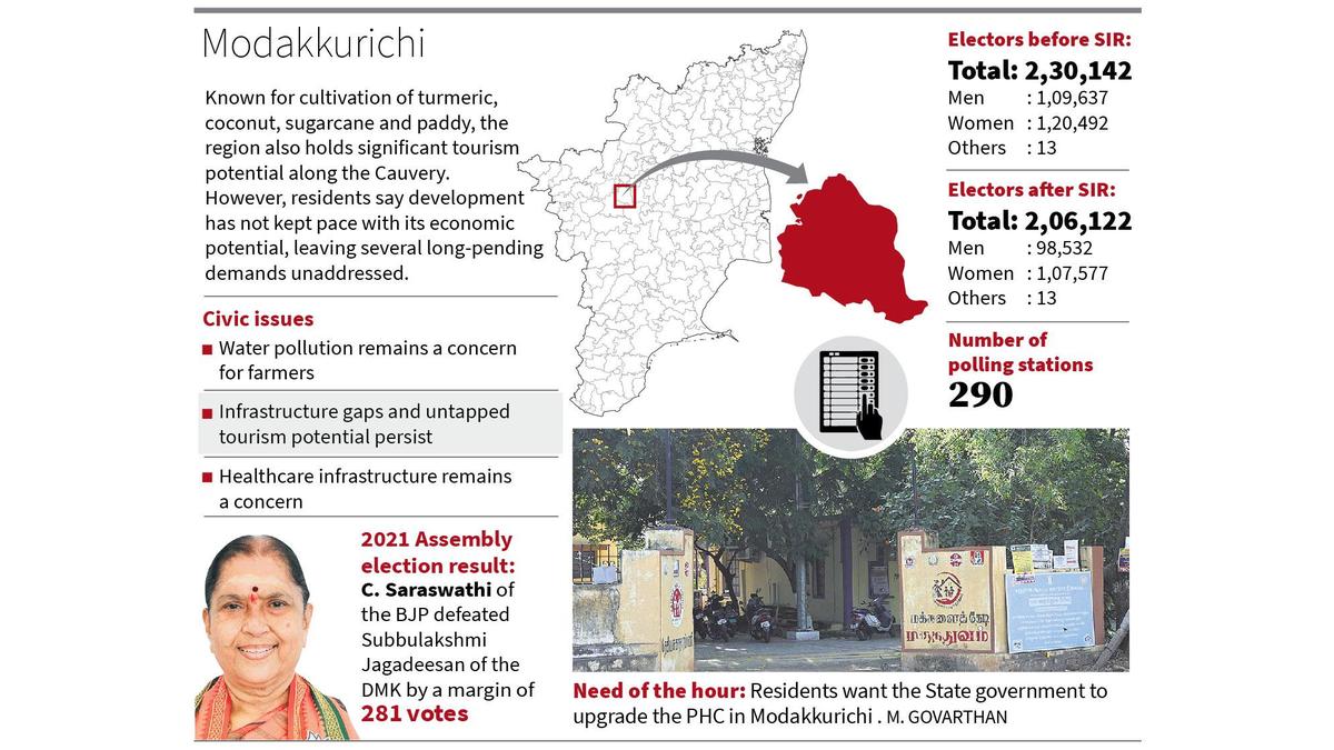 The largely agrarian Modakkurichi constituency continues to suffer from infrastructure gaps and environmental issues.