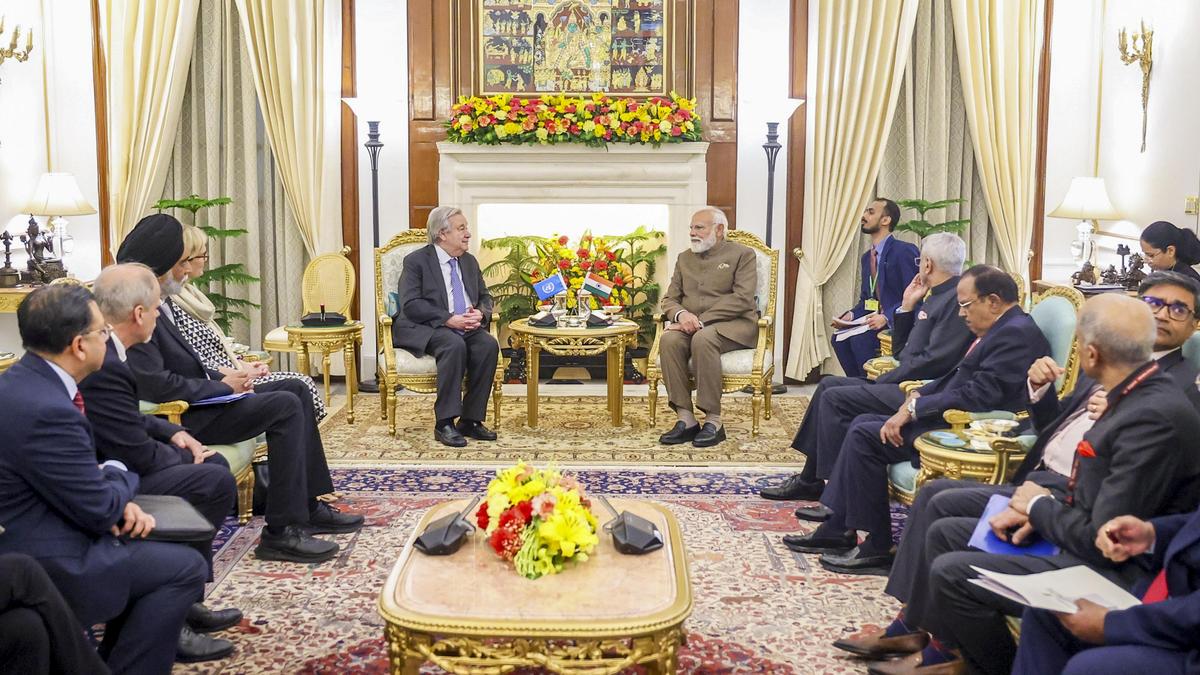 Mr. Modi met Mr. Guterres and other leaders on the sidelines of the AI Impact Summit. “We talked about making AI all inclusive and how the UN can play a constructive role in this regard,” the Prime Minister said on his talks with the UN chief.