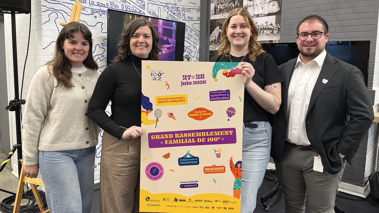 La Société du 100e de Rouyn-Noranda donne rendez-vous à la population à son Grand Rassemblement familial, les 27 et 28 juin, au parc Mouska. La programmation de la fin de semaine de retrouvailles a été dévoilée le 9 février au Cégep de l’Abitibi-Témiscamingue. L’événement proposera des compétitions sportives de volley-ball, pickleball, basket-ball et de soccer, en plus de compétitions familiales de washers et de fers. Une course de boîtes à savon, tant pour les particuliers que les entreprises, avait déjà été dévoilée. Du bingo, des jeux gonflables, une conférence et un jeu-questionnaire historique ainsi que des tours de montgolfière seront également de la programmation. La chargée de projet événementielle Élie-Anne Lamerise-Dumont.