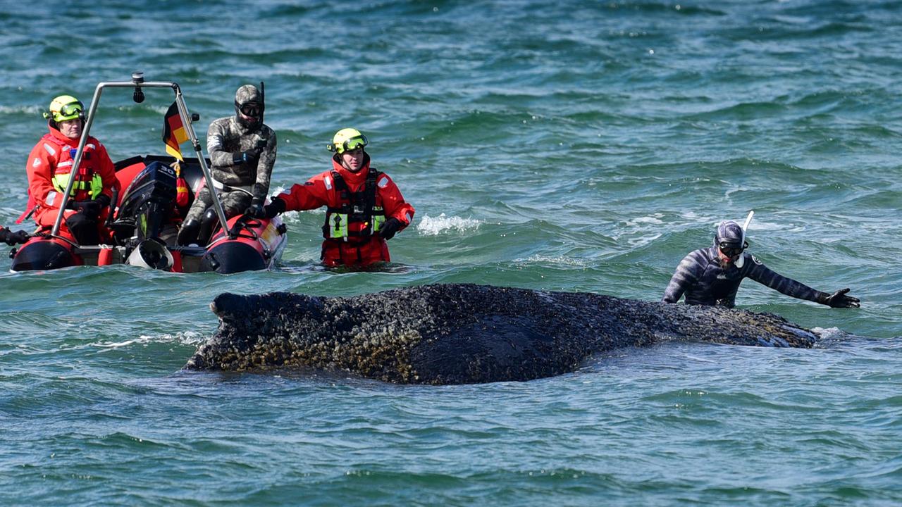 Der Buckelwal wird seit Tagen von Helfern in der Ostsee umsorgt und begleitet. Dies soll bis zu seinem Tod weiter geschehen. Doch gegen sie werden wohl Morddrohungen ausgesprochen. Nach der gescheiterten Rettung des vor der Ostseeküste bei Wismar gestrandeten Buckelwals sind Helferinnen und Helfer immer mehr verbalen Angriffen ausgesetzt. "Bedauerlicherweise nehmen seit dem Zeitpunkt, als klar wurde, dass das Tier nicht zu retten sein wird, die Anfeindungen gegen Beteiligte an der Hilfsmaßnahme zu - bis hin zu Morddrohungen", sagte Mecklenburg-Vorpommerns Umweltminister Till Backhaus (SPD) laut einer Mitteilung. "Natürlich verstehe ich, dass die Situation für die Menschen sehr emotional ist", so Backhaus weiter. Auch er sei traurig. Würden strafrechtlich relevante Aussagen getätigt, ob in sozialen Medien, per Zettel im Briefkasten oder per E-Mail, werde ein solches Verhalten angezeigt, sagte Backhaus. Er sei aber zuversichtlich, dass sich die Lage beruhigen werde. Unterdessen wird der Wal nach Angaben des Ministeriums rund um die Uhr durch die Wasserschutzpolizei und eine Walwache an Land betreut. Kräfte der Feuerwehr benetzten das Tier im Laufe des Tages immer wieder mit Wasser. "Wir werden das Tier weiter begleiten - bis zum Schluss. Um ihm seine Situation angenehmer zu machen, wurde heute damit begonnen, den Rücken des Wals, der aus dem Wasser ragt, zu benetzen", sagte Backhaus, der am Mittag erneut vor Ort war. Die Experten hätten die Hilfsaktion empfohlen, um lindernde Umstände für den Wal zu schaffen. "Der Vorgang soll alle zwei bis drei Stunden wiederholt werden", sagte Backhaus. Die Haut des Tieres trockne aus, das sei schmerzhaft und gefährlich.