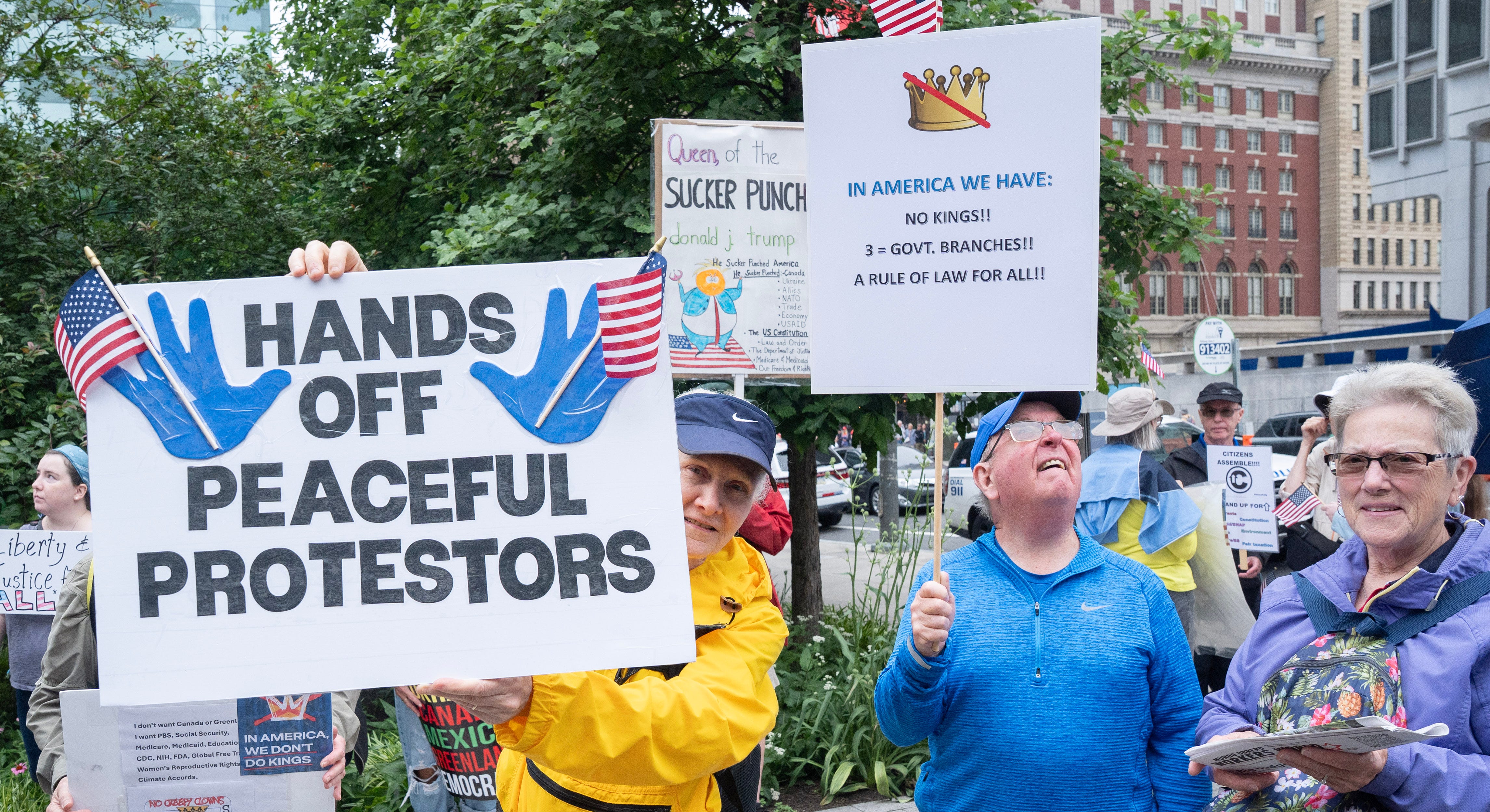 "In America, we don't have kings — and we won't back down against chaos, corruption, and cruelty," the official No Kings website reads.