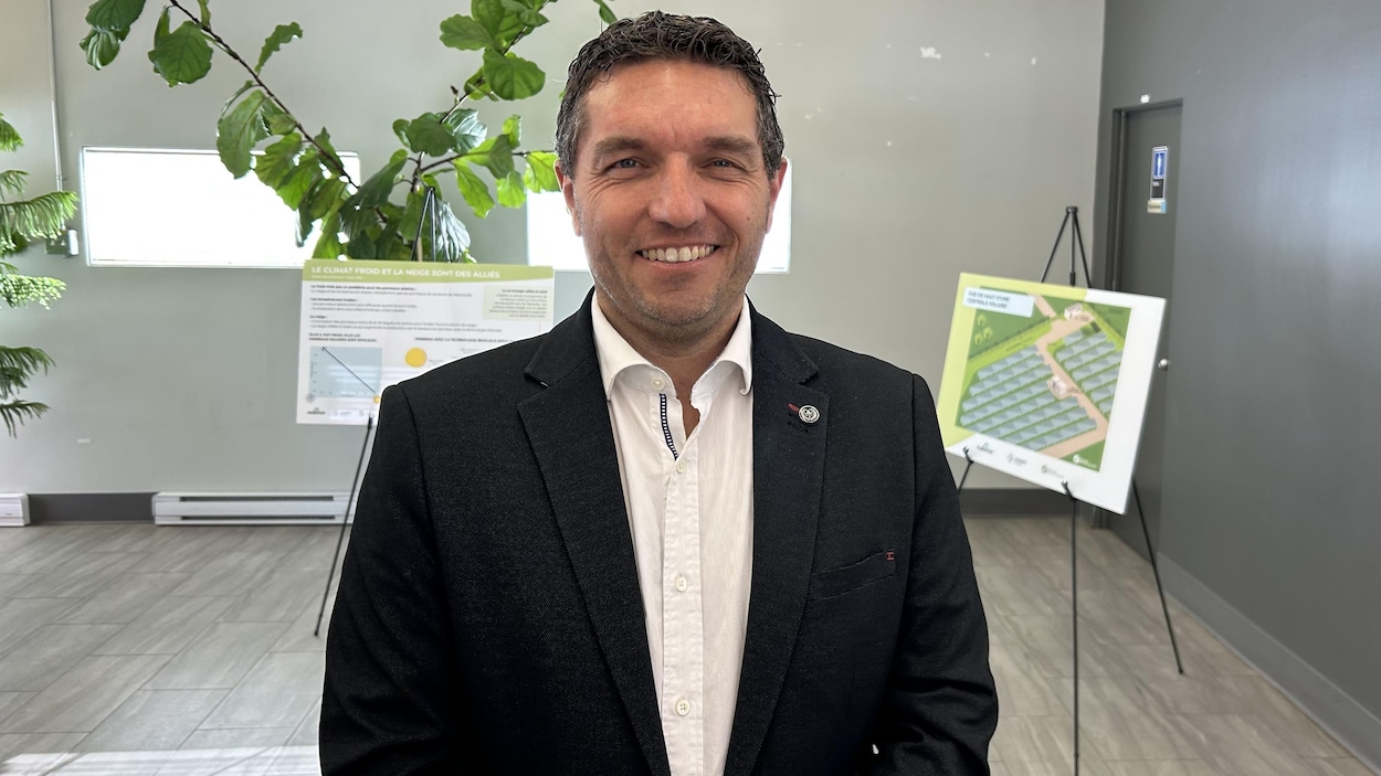 Nutrinor-Gilbert Énergies renouvelables se dit optimiste de voir ses projets de parc solaire retenus par Hydro-Québec pour l'appel de proposition de projets de 300 mégawatts d'ici 2029. La date limite pour soumettre des propositions partout au Québec est le 31 mars. Les projets d'énergie solaire de l’entreprise au Saguenay-Lac-Saint-Jean seraient réalisés à L'Ascension-de-Notre-Seigneur et à Laterrière, sur des anciens sites d'enfouissement sanitaire. Nous sommes très confiants. Nous avons un projet qui est très positif, très porteur, tant pour la région, que même pour Hydro-Québec. Donc, pour nous actuellement, nous sommes très confiants d'avoir toutes nos chances d'être retenus, a mentionné Maxime Gilbert, directeur général de Nutrinor-Énergies renouvelables. Le projet d'énergie solaire de Nutrinor-Gilbert Énergies renouvelables a été présenté aux citoyens de Laterrière mardi. Photo : Radio-Canada / Roby St-Gelais