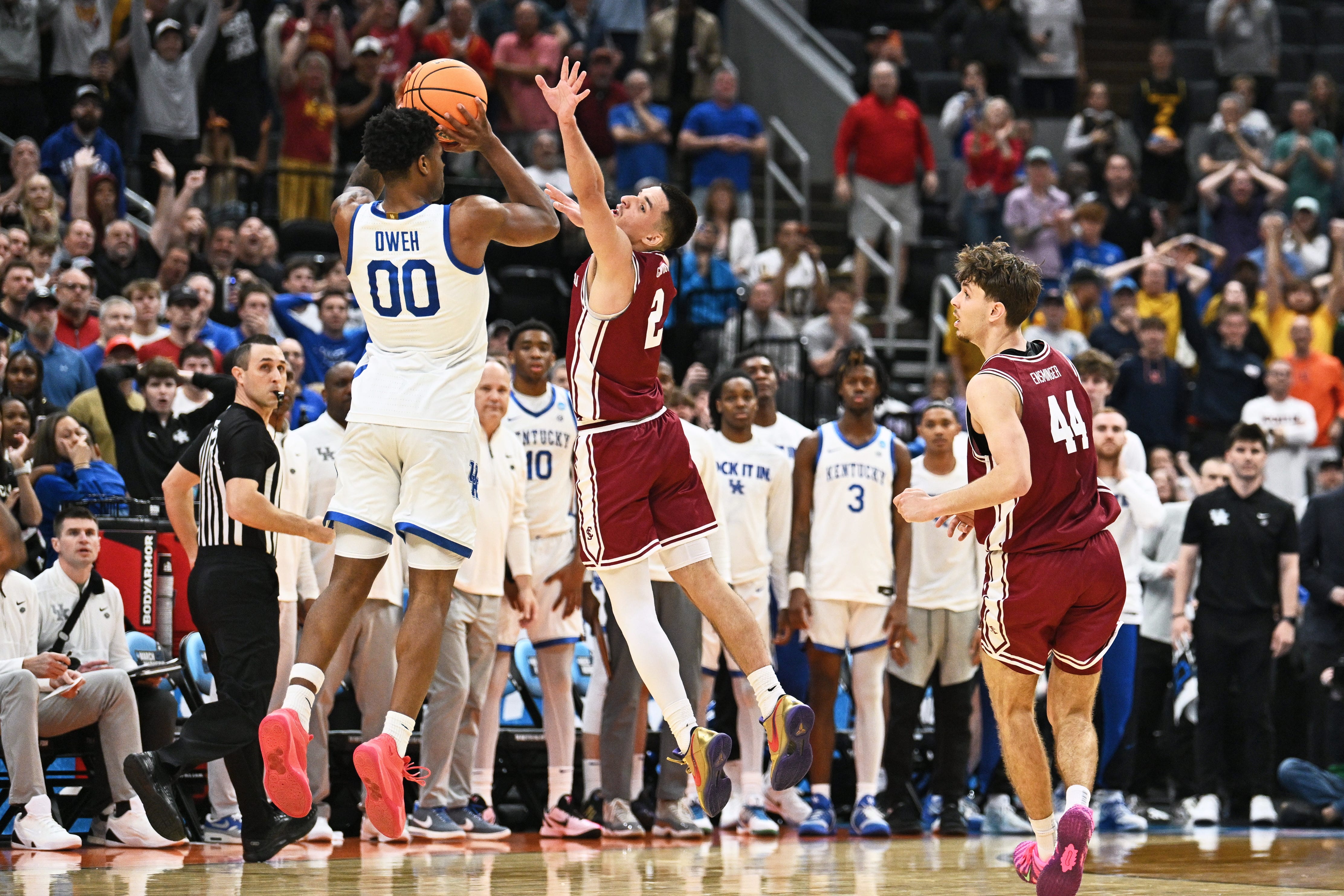 Kentucky's Otega Oweh instead hit a stunning 3-point buzzer beater from the March Madness logo to force overtime. While there's no telling if that happens or not if Santa Clara got its timeout, the Broncos could have had a chance to defend the final play more efficiently.