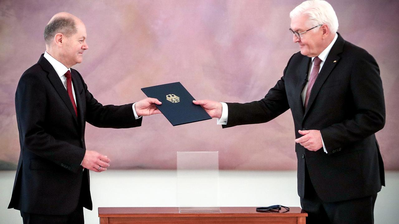 Der SPD-Politiker Olaf Scholz ist zum neunten Kanzler der Bundesrepublik Deutschland gewählt worden. Mit der anschließenden Übergabe der Ernennungsurkunde ist die Regierungsgewalt gemäß der Vorgabe des Grundgesetzes von der bisherigen Kanzlerin Angela Merkel (SPD) auf den Nachfolger übergegangen. Im Anschluss will Scholz seinen Amtseid vor dem Bundestag ablegen.