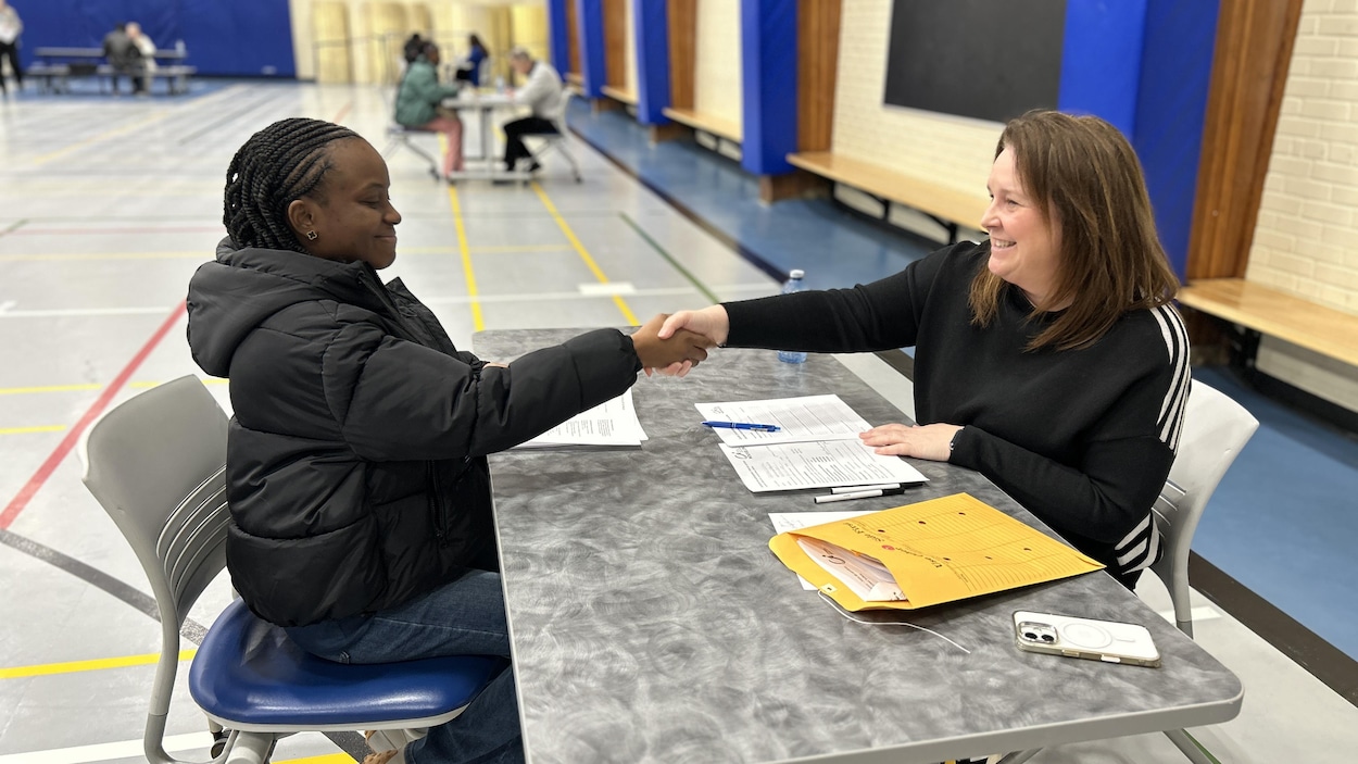 Dès l’ouverture des portes à 9 h 30, l’effervescence était palpable dans le gymnase de l’École secondaire du Sacré-Cœur. Pour le Conseil scolaire catholique Nouvelon (CSC Nouvelon), l'événement ne visait pas seulement à remplir des banques de candidatures, mais à créer un premier lien humain dans un contexte de pénurie de main-d'œuvre. La plus grande richesse qu'on a comme Conseil scolaire catholique, c'est nos ressources humaines, a rappelé Tom Michaud, directeur de l'éducation. Tom Michaud explique l’importance de recruter des enseignants passionnés par l’éducation francophone dans le Nord de l’Ontario. Photo : Radio-Canada / Déborah St-Victor En s'adressant aux recrues potentielles, il a ajouté que le Conseil souhaite offrir bien plus qu'une simple carrière.