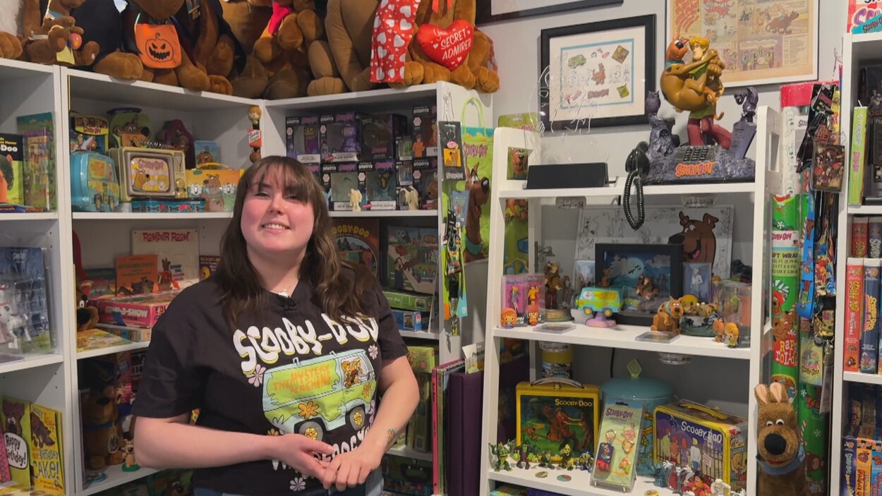 Alexa Lawlor, une Réginoise de 28 ans, est tombée amoureuse du personnage Scooby-Doo quand elle était petite et sa passion se poursuit à travers sa collection d’objets-souvenirs, ainsi que son balado The Unmasked History of Scooby-Doo. Bien qu’elle a du mal à se rappeler de quand elle a commencé sa collection, elle se souvient que son frère avait une cassette VHS de Scooby-Doo et un petit jouet du personnage qui est vite devenu un de ses objets favoris quand elle était enfant. Une pièce remplie d'objets Scooby-Doo. Photo : CBC/Germain Wilson En grandissant dans les années 1990 et 2000, des objets de Scooby-Doo étaient très populaires à cause de la sortie de ses films. Au fur et à mesure, les objets du personnage ont commencé à remplir la maison de la collectionneuse de 28 ans.