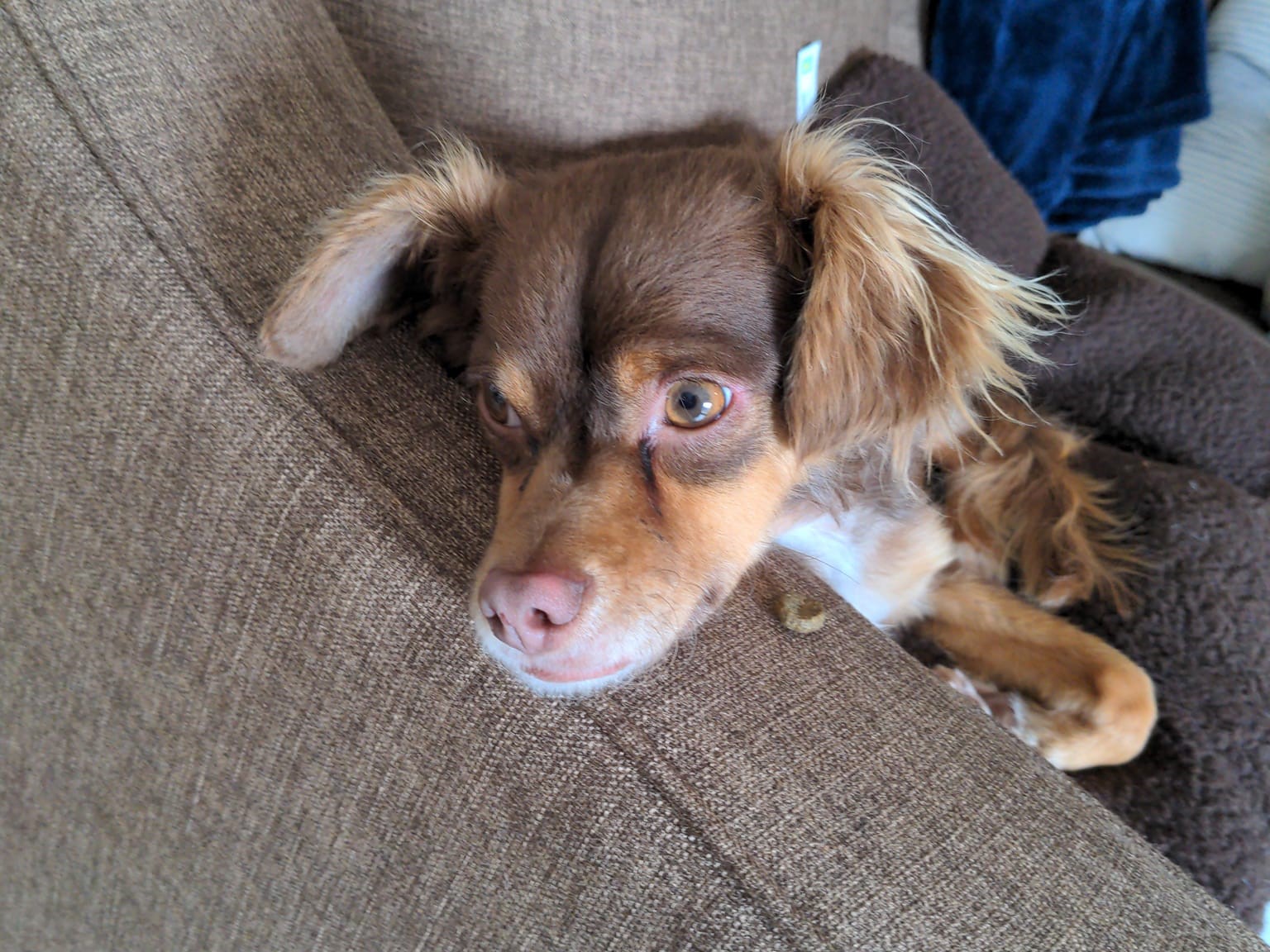 Like Rio, Moran bolted to her dog’s reported location — around five kilometres from where Rio first took off — and found some people who had noticed, then rescued Rio in front of an RV park on Highway 97.