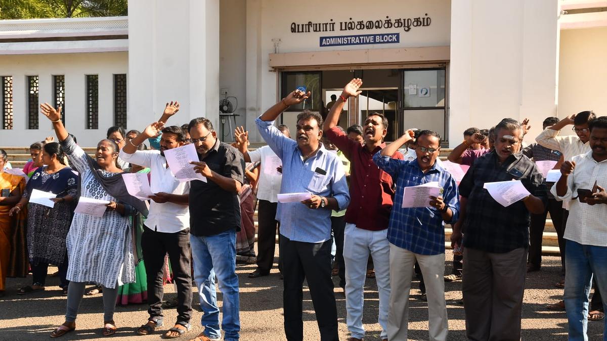 Periyar University teachers, staff, stage protest over V-C’s failure to suspend Registrar despite T.N. government order