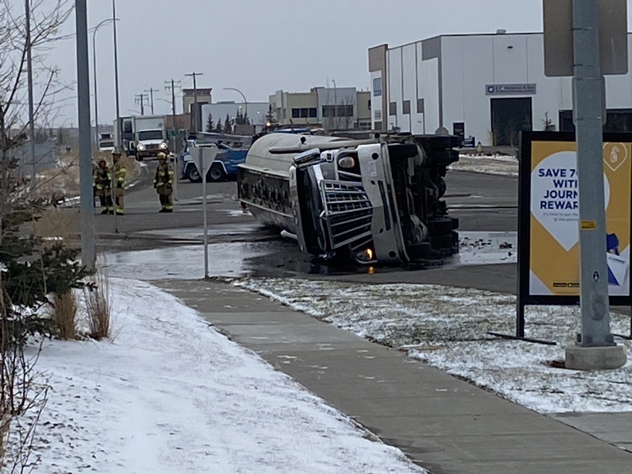 Police, fire respond to overturned diesel truck in southeast Calgary