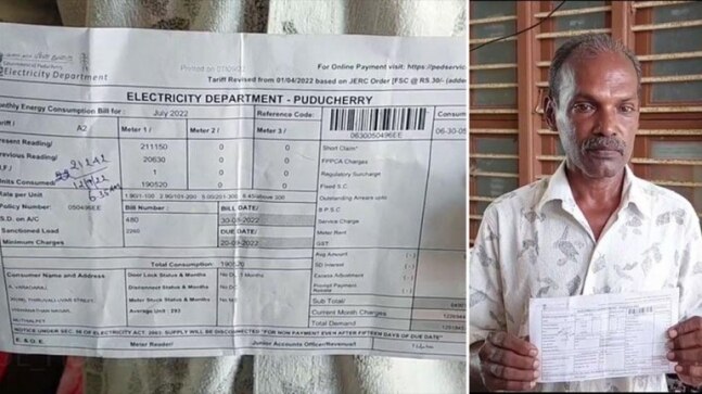 Saravanan, a resident of Puducherry, was shocked when he received a bill of Rs 12.91 lakh from the EB department for July. EB officials stated that it was a technical error and has been rectified.