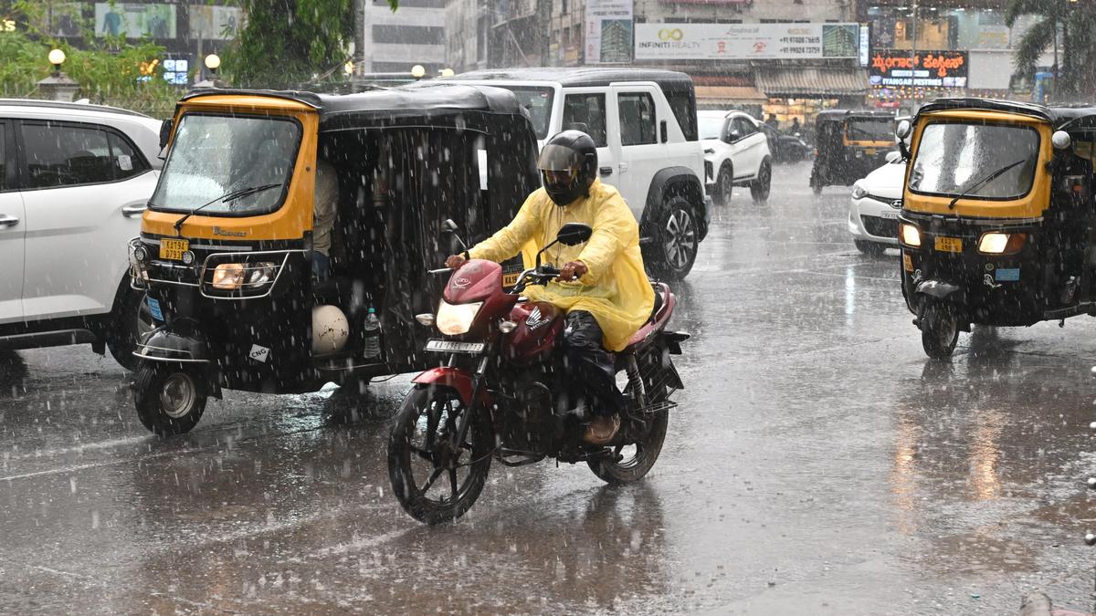 A scene in Udupi during the rains on Saturday. | Photo Credit: UMESH S. SHETTIGAR