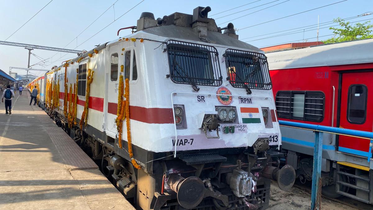 Rameswaram-Mangaluru Central Weekly Express Inaugural Special was flagged off by Prime Minister Narendra Modi at Tiruchirappalli on March 11, arrived in Mangaluru Central on March 12, 2026. | Photo Credit: H S MANJUNATH