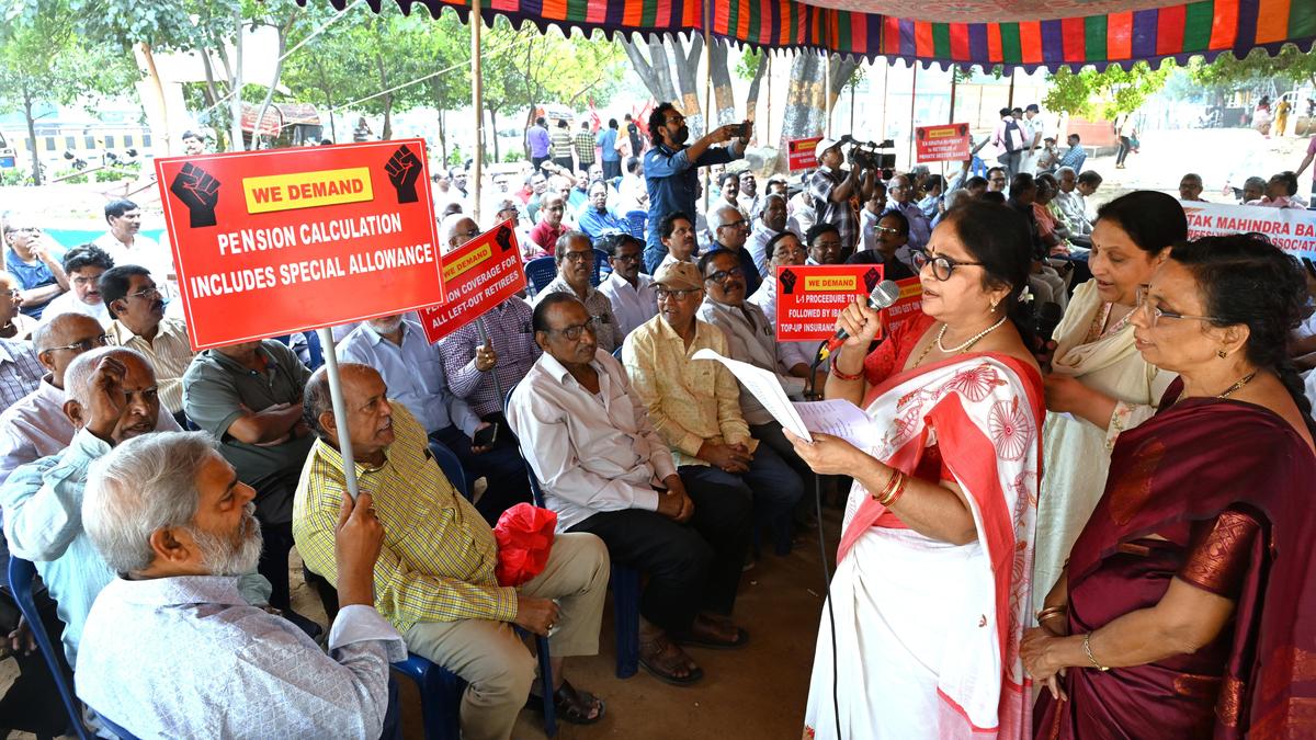 Retired bank staff stage dharna in Vizag