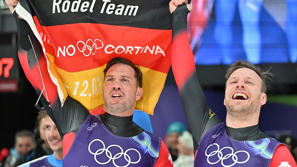 Zum Abschluss der Rodel-Wettbewerbe krönen Deutschlands Medaillengaranten ihre Olympia-Auftritte mit Gold. Tobias Wendl und Tobias Arlt stellen bei den Winterspielen eine deutsche Bestmarke auf. Die deutschen Rodel-Festspiele enden mit einem historischen Moment: Dank des Gold-Coups in der Team-Staffel haben sich die Doppelsitzer Tobias Wendl/Tobias Arlt mit ihrem insgesamt siebten Olympiasieg seit 2014 zu Deutschlands erfolgreichsten Winter-Olympioniken gekrönt. Der Bayern-Express überflügelte seine langjährige Kollegin Natalie Geisenberger aus der bayerischen Trainingsgruppe «Sonnenschein», die neben sechsmal Gold noch einmal olympisches Bronze gewann. Seit der Einführung der Staffel-Disziplin 2014 stand immer Deutschland ganz oben auf dem Olympia-Podest. Silber ging im Cortina Sliding Centre an Österreich, Bronze an Gastgeber Italien. Am lautesten war aber natürlich der deutsche Jubel. Julia Taubitz und Max Langenhan feierten durch den Team-Erfolg ihr zweites Gold nach ihren Einzelsiegen. Dajana Eitberger, die am Vortag mit Debütantin Magdalena Matschina Silber bei der Olympia-Premiere im Frauen-Doppel holte, freute sich über ihr erstes Gold. Wendl/Arlt hatten zuvor Bronze im Doppelsitzer gewonnen. Somit bleibt Deutschland die Rodelnation Nummer eins. Drei Olympiasiege sowie je einmal Silber und Bronze sind aufgrund der zuletzt starken Österreicher und Italiener eine Topbilanz.
