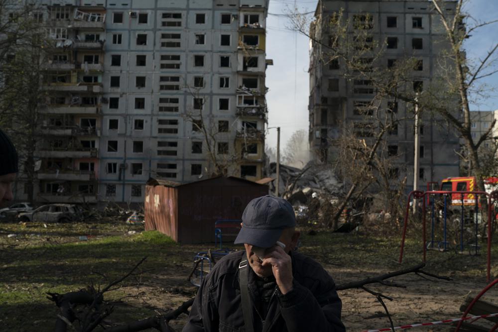Zaporizhzhia resident Mucola Markovich, 76, said he and his wife hid under a blanket when they heard incoming rockets and booms from blasts. “There was one explosion, then another one,” he said. Then, in a flash, their fourth-floor apartment was gone, Markovich said, holding back tears.