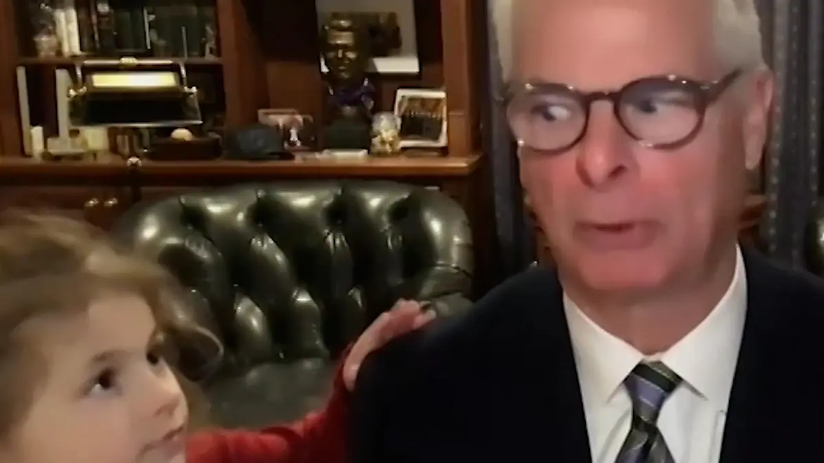 Dieser Auftritt sorgt für einen süßen Zwischenfall. Finanzexperte Rick Davis ist gerade dem TV-Sender Bloomberg zugeschaltet und im Gespräch. Seiner Enkeltochter ist das egal. Sie will zu Opa.