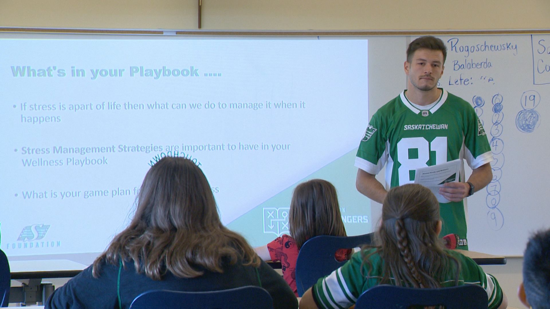 “It’s OK to not feel yourself,” said Saskatchewan Roughriders centre Dan Clark. “It’s OK to be able to open up about your emotions, talk about how you’re feeling. And we want to be able to equip youth with tools to be able to understand that they know they’re not feeling right.”