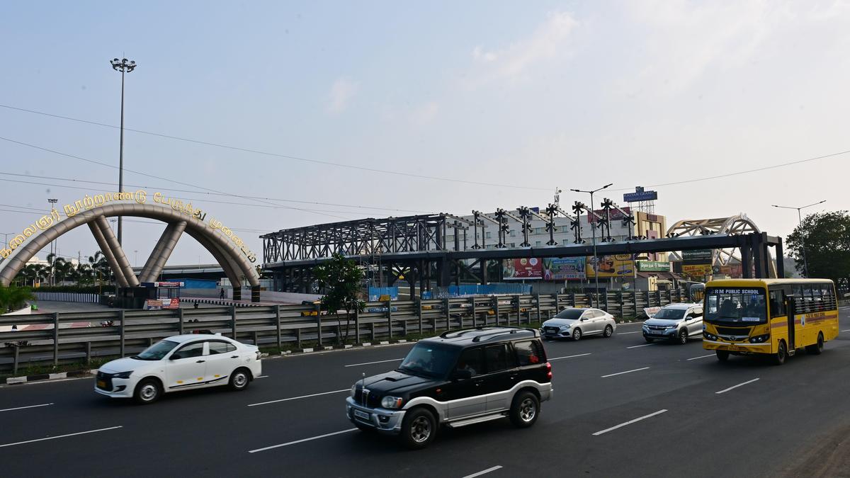 Skywalk construction linking Kilambakkam bus terminus to the railway station is pending, hindering passenger connectivity in Chennai.