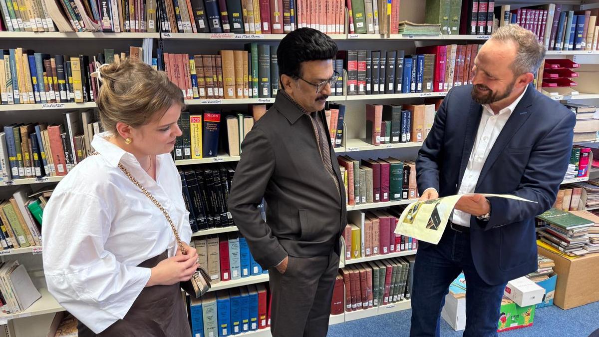 Tamil Nadu CM M.K. Stalin visits library in Germany, praises rare Tamil literary works, and government's contribution.