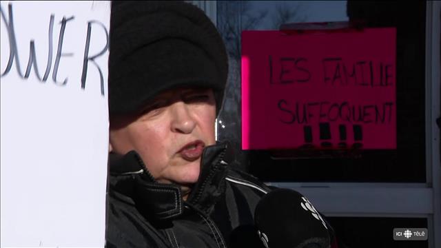 Une manifestation contre les tarifs d'électricité s'est déroulée samedi devant des bureaux d'Énergie NB, à Tracadie-Sheila, au Nouveau-Brunswick.