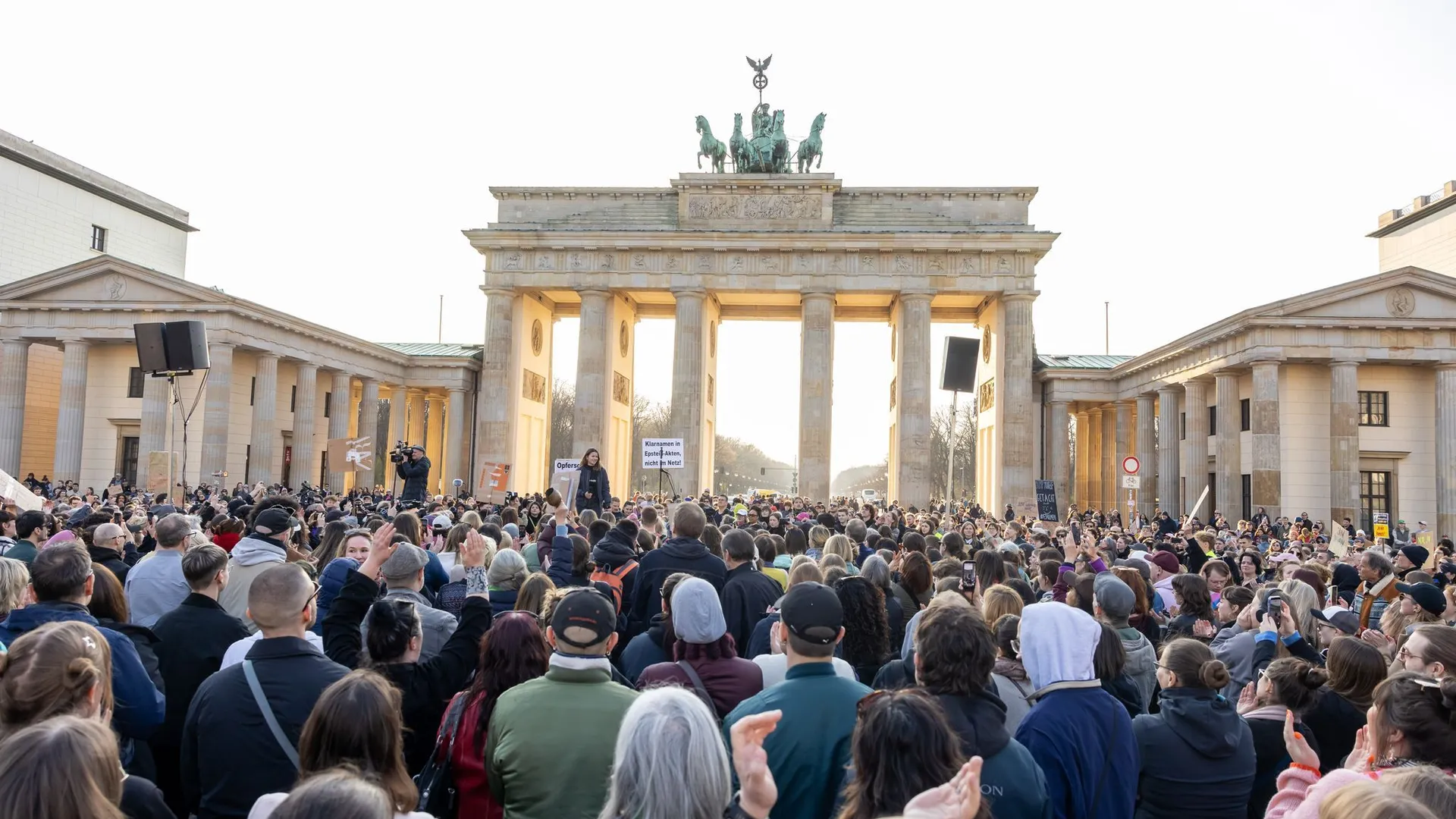Mehrere tausend Menschen haben in Berlin an einer Demonstration "Gegen sexualisierte digitale Gewalt - Solidarität mit allen Opfern" teilgenommen. Sie versammelten sich am Nachmittag am Brandenburger Tor auf dem vollständig gefüllten Pariser Platz. Auf Plakaten stand: "Menschenrechte auch im Internet" und "Die Scham muss die Seiten wechseln". Die Polizei sprach von 6700 Teilnehmerinnen und Teilnehmern, die Veranstalter von 13.000 Menschen. Die Kundgebung am Brandenburger Tor fand nach Angaben der Veranstalter wegen der aktuellen Diskussion in Solidarität mit der Moderatorin und Schauspielerin Collien Fernandes (44) statt. Eine Stellungnahme von Fernandes wurde vorgelesen, in der sie sich für die Solidarität bedankte und in der es hieß: "Sexualisierte und digitale Gewalt sind weiter verbreitet, als man ahnen mag. Aktuell gibt es diesbezüglich jedoch massive gesetzliche Schutzlücken. (...) Das muss sich ändern! Wir dürfen die Täter nicht mehr davonkommen lassen! Sie verstecken sich hinter einer Mauer des Schweigens, und diese ist hoch – sehr, sehr hoch."