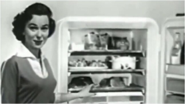 The now-viral video was shared on Twitter by a page called Lost in History. The black-and-white advertisement featured in the clip was for a fridge. Well, the appliance boasted of a plethora of compartments on the door for bottles, cheese and even butter. There was a detachable compartment for fruits and vegetables. That's not all. The shelves of the fridge can be rolled over all the way to the front and it also features an ice-cube ejector. Yes, you read that right.