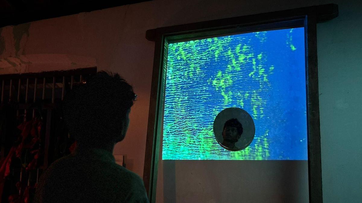 The interiors of Neighbour Gallery at Kesavadasapuram in Thiruvananthapuram evoke an image of an ancestral home, partitioned into several sections, where each family member has left something of their own to ponder over. Toppled chairs, scattered passport-sized photographs, colourful frocks hung on a panel, and an unmade bed to lie down and watch the exhibit — all remind you of a presence preceding your arrival. A sombre soundtrack, intertwined with Bollywood dialogues and narrations from exhibits, further mystifies the space.