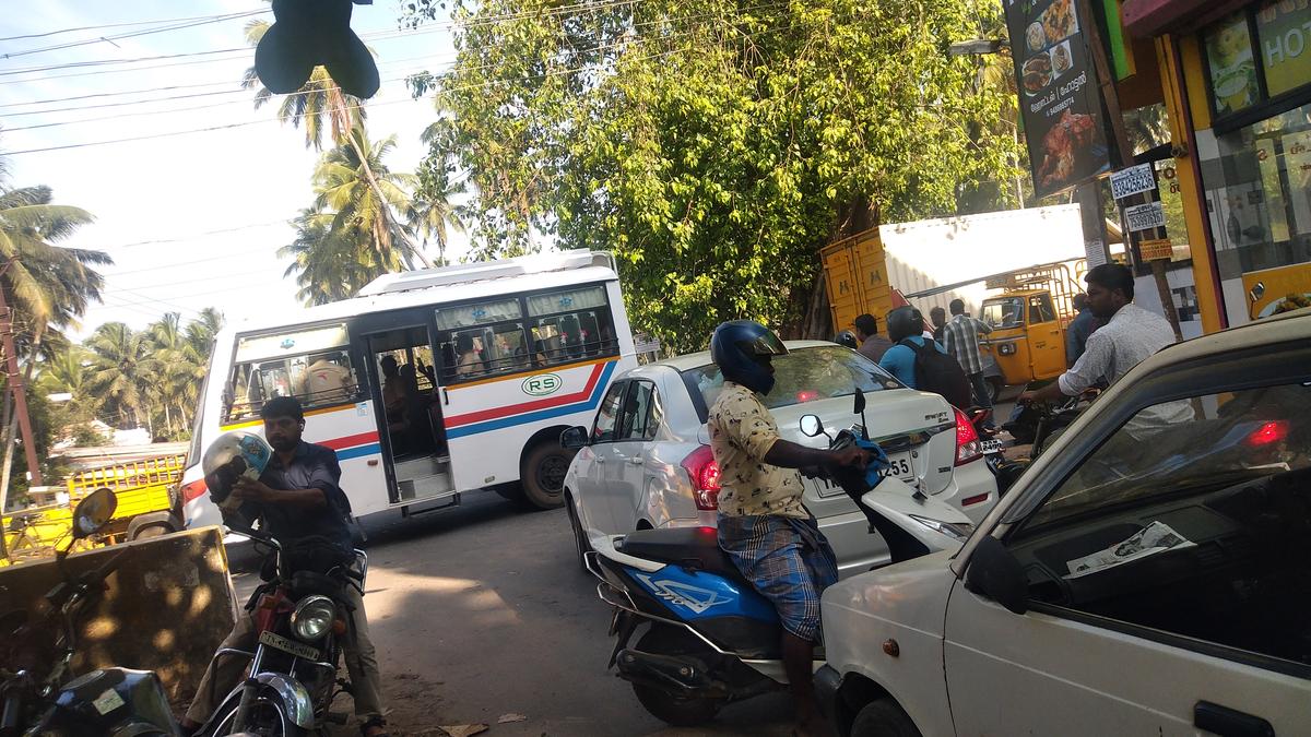 ‘Kambi Palam’ junction in Konam on Rajakkamangalam Road in Nagercoil is congested during peak hours, due to traffic from all directions. Chettikulam - Rajakkamangalam - Colachel road and Medical College Road connecting Kunchanvilai with Asaripallam intersect here. All India Radio, Kendriya Vidyalaya, Govt. ITI, Govt. Polytechnic College, Govt. Engineering College and Holy Cross College function near this junction, which give rise to flooding of vehicles, pedestrians and students in the morning and evening, resulting in chaos. I request the authorities to find a solution to ease the hardships faced by public.