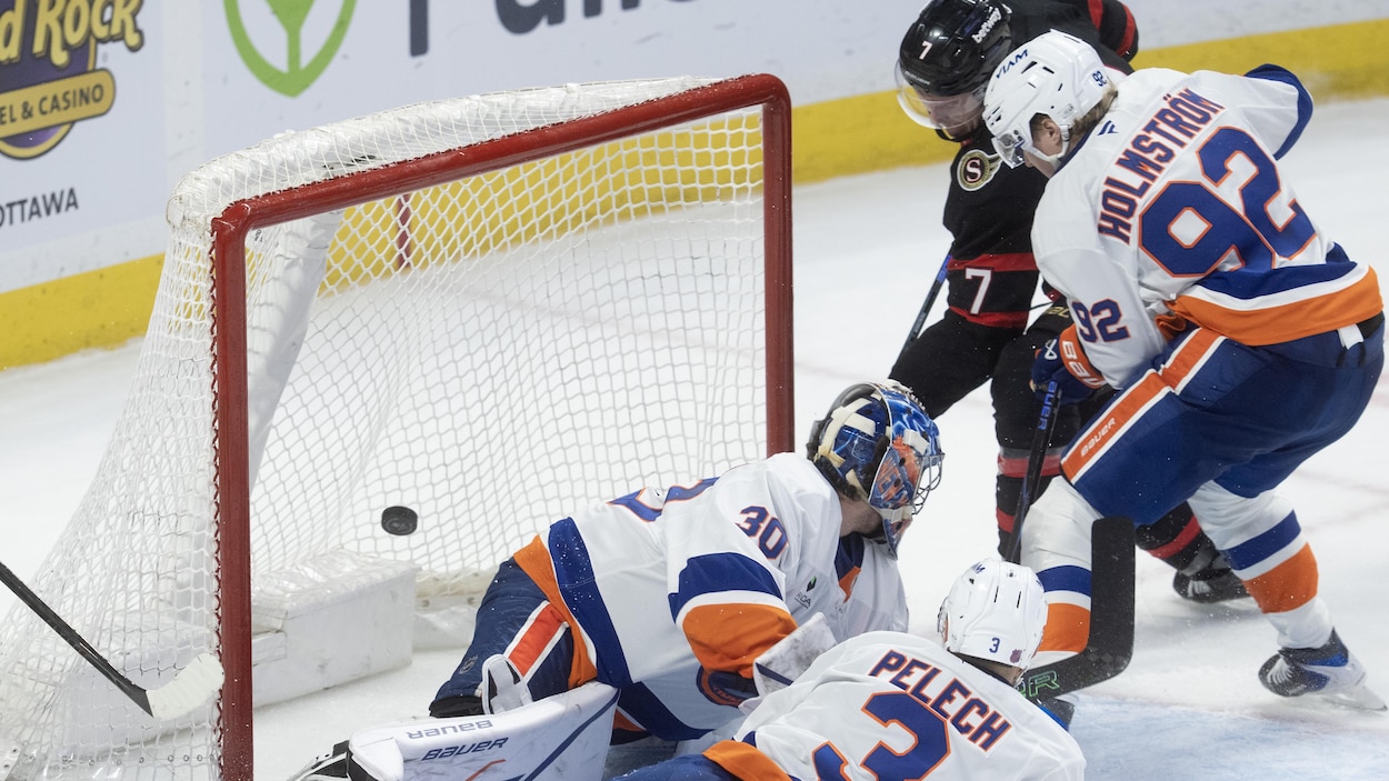 Brady Tkachuk a dénoué l'impasse avec 11,1 secondes à jouer au troisième tiers, jeudi, permettant aux Sénateurs d'Ottawa de l'emporter 3-2 face aux Islanders de New York. Tkachuk a profité d'une rondelle libre devant le filet, après un tir de la ligne bleue de Jordan Spence. Shane Pinto a marqué en désavantage numérique pour Ottawa, qui gagnait pour la troisième fois en quatre matchs. Warren Foegele a été l'autre buteur des vainqueurs, tandis que James Reimer a fait 17 arrêts. Ottawa est à cinq points de la dernière place en séries dans l'Est.