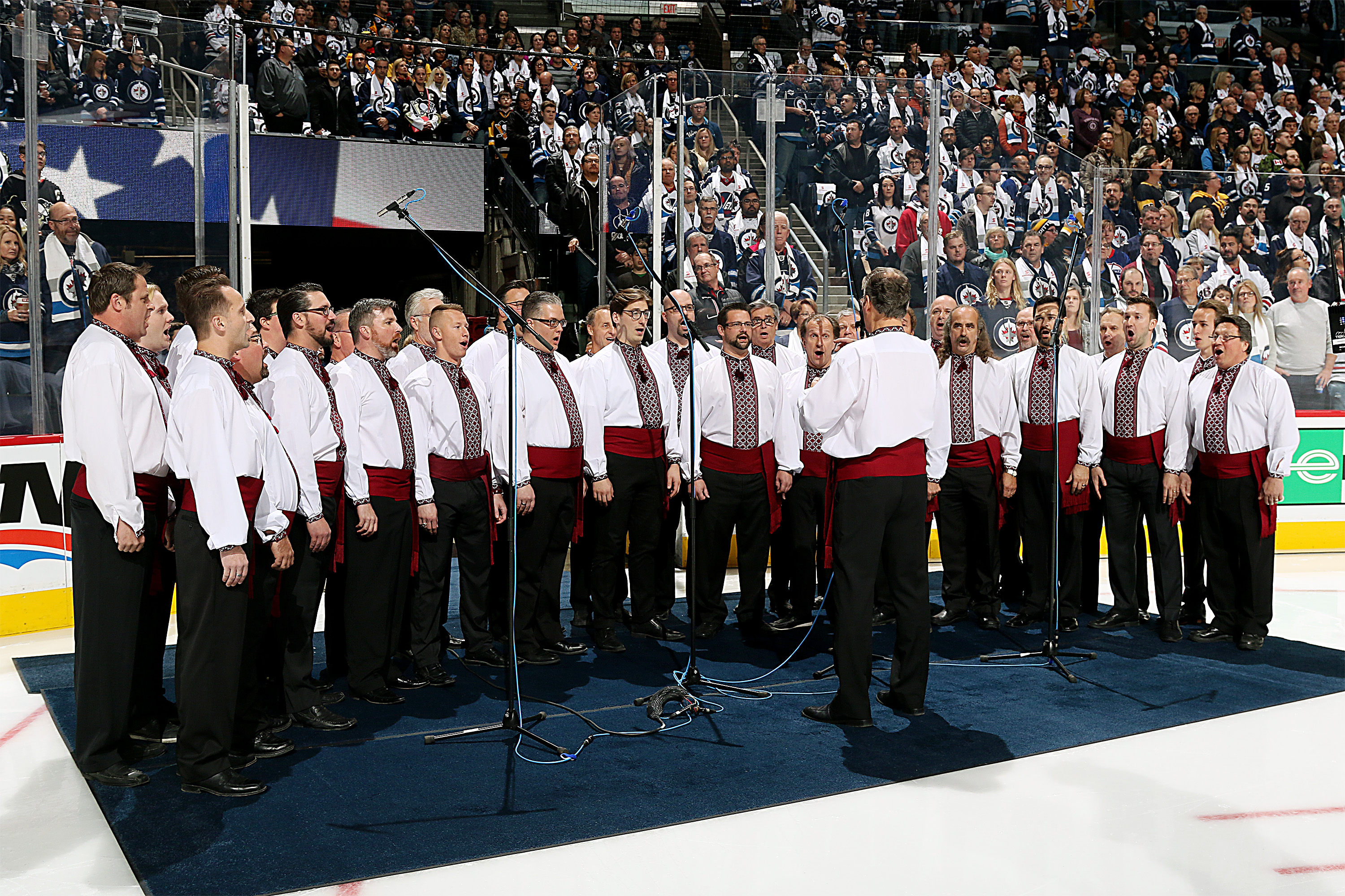 Hoosli, a Ukrainian male chorus, will be singing the national anthem prior to puck drop, and while the long-running community choir has been on anthem duty at Canada Life Centre in the past, this occasion has special significance.