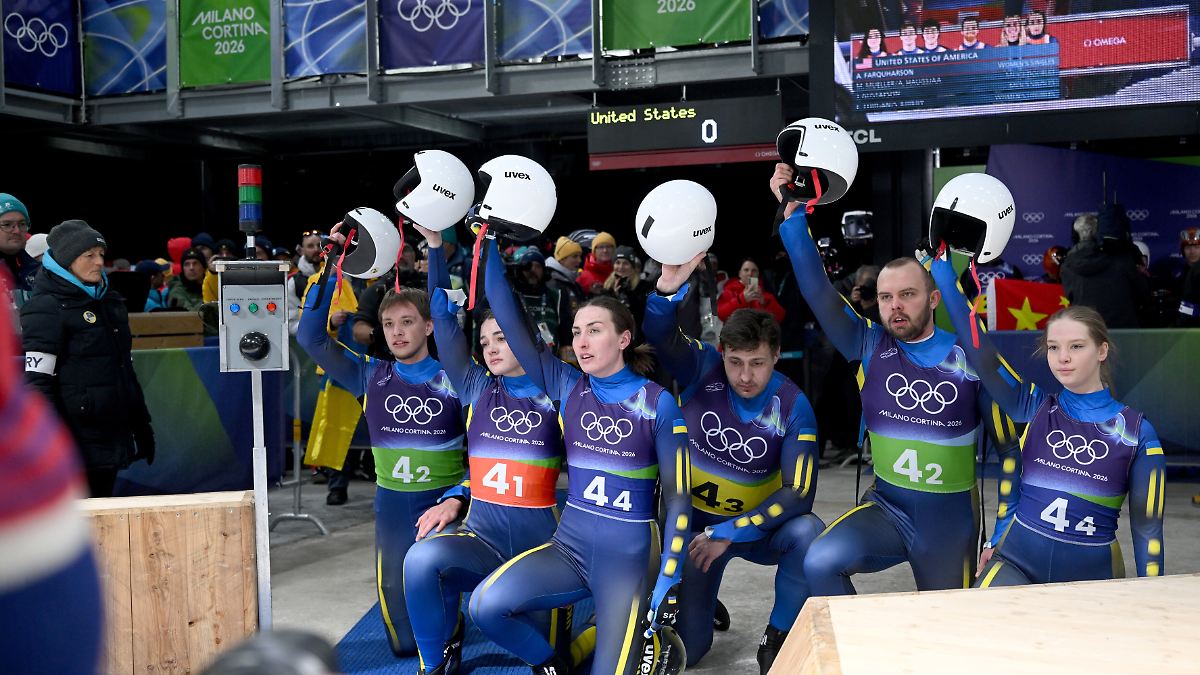 Ukrainische Rodler knien bei Olympia nieder