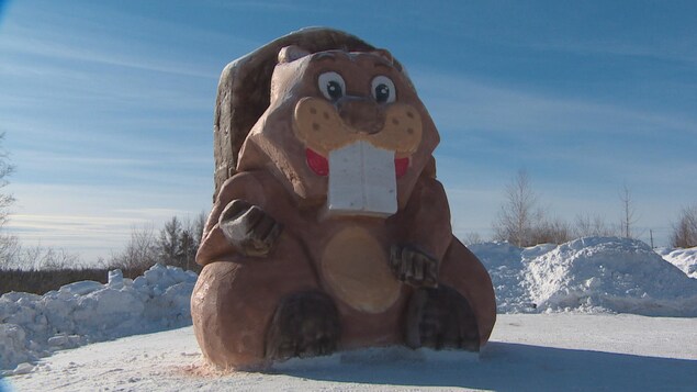 Le castor de neige qui est situé près de la rue du parc mesure cinq mètres de hauteur.
