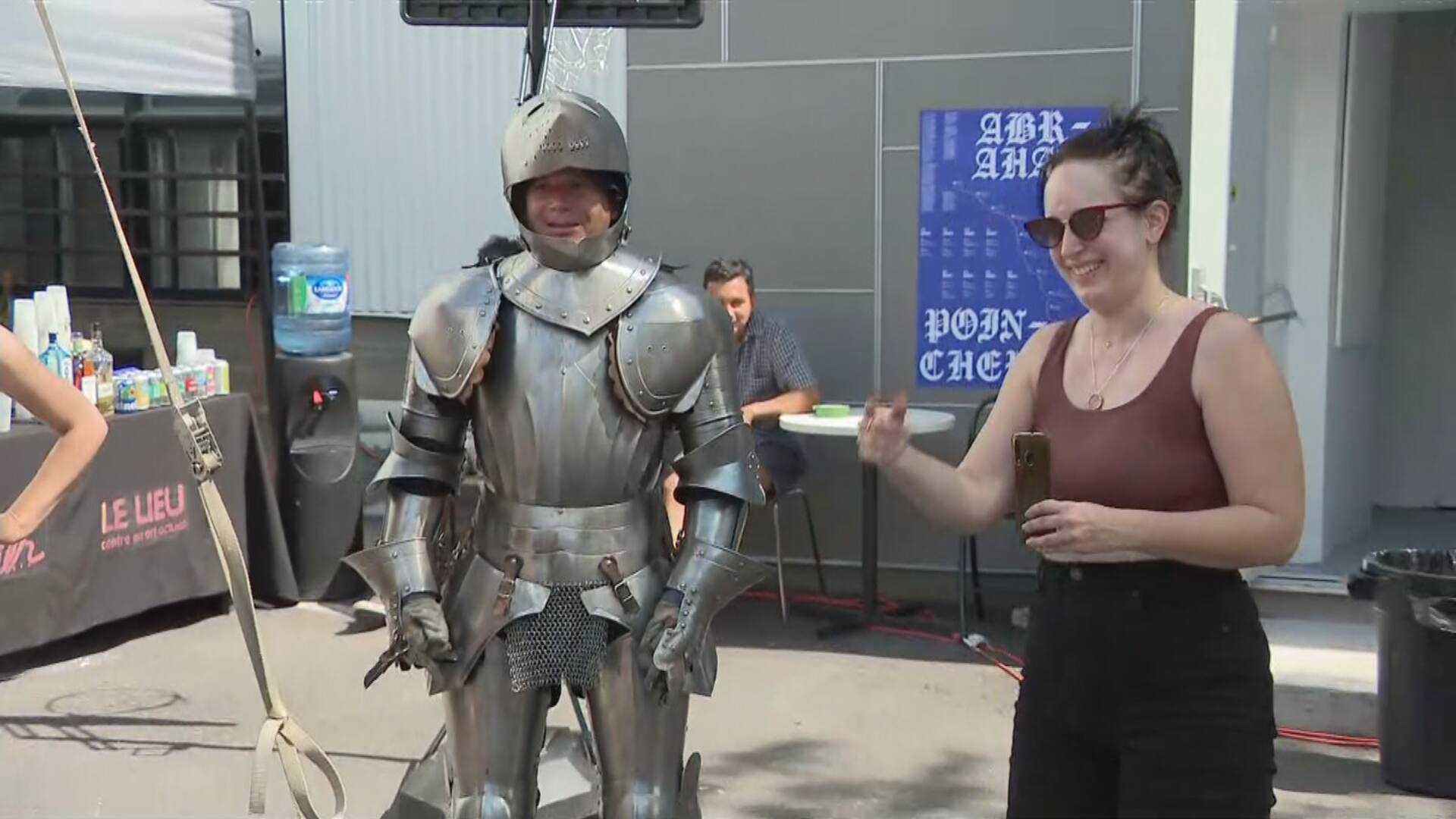 Abraham Poincheval, un artiste français s’est donné comme défi de marcher de Montréal à Québec avec son armure de 75 livres en dix jours.