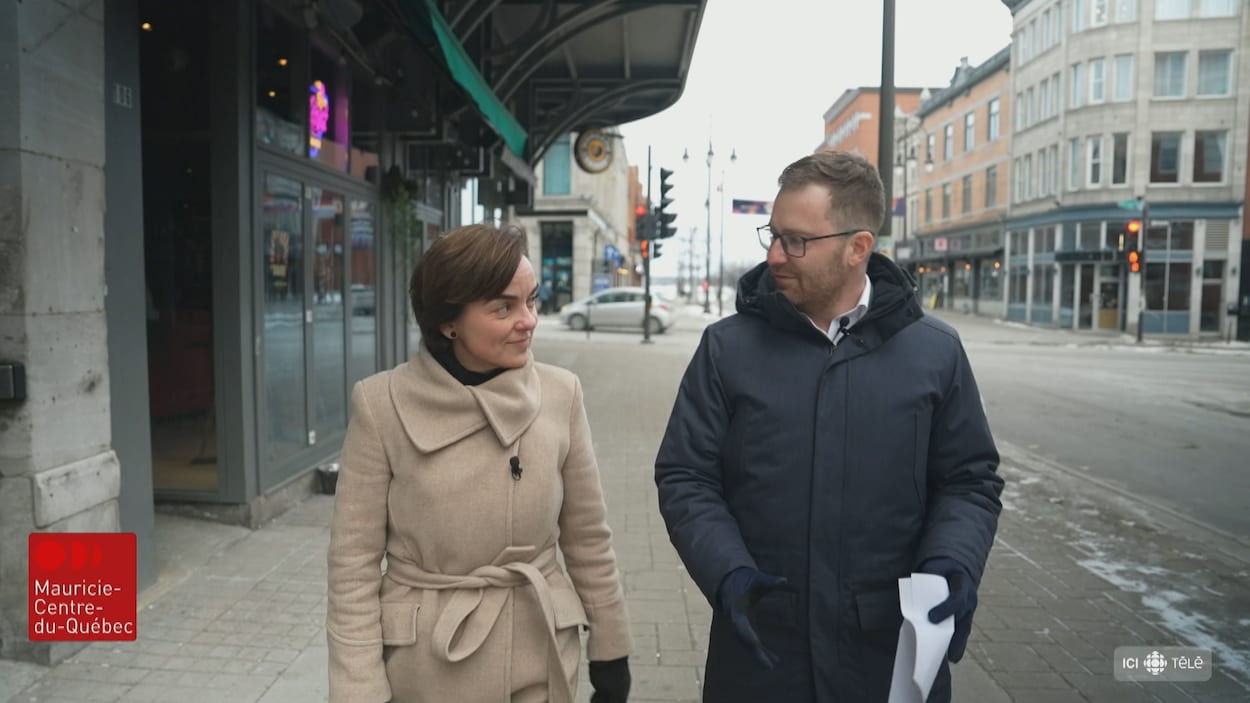 Le chef d’antenne du Téléjournal Mauricie–Centre-du-Québec, Jonathan Roberge, s’entretient avec la candidate à la chefferie de la CAQ, Christine Fréchette, de passage dans sa ville natale.