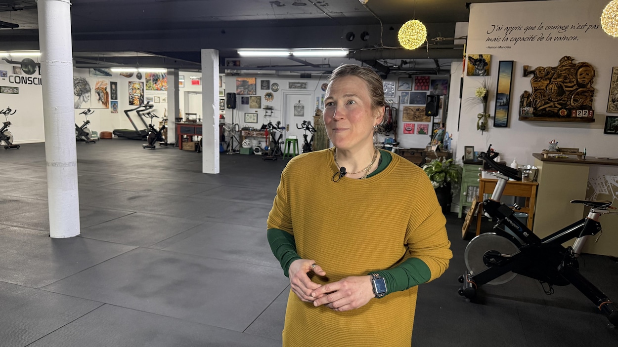 Et si s'entraîner pouvait devenir une forme de création? C'est ce que pense Marie-Anne Laperrière, et c'est dans cet esprit que la physiothérapeute de Trois-Rivières a décidé, il y a trois ans, de transformer sa salle d'entraînement en galerie d'art vivante. La Trifluvienne est convaincue que l'art est une source de motivation capable de transformer l'effort en inspiration. Elle souhaite aussi, avec son projet, démocratiser l'art. Elle pense que l’art a un effet sur les gens, qu’il peut les rendre plus heureux, plus apaisés. Marie-Anne Laperrière croit qu’une toile qui correspond davantage à une personne peut lui offrir une autre raison de garder son centre d'attention sur son entraînement. Toutes les œuvres affichées sur les murs sont celles d'artistes québécoises et québécois. Moi, ce qui m'importe, c'est d'encourager les gens du Québec. Puis, ce que j'ai remarqué depuis que je suis toute jeune, c'est que l'art, c'est souvent dans les galeries. Ça s'améliore beaucoup, mais pendant plusieurs années, il y a eu un certain snobisme, donc j'ai voulu donner vraiment plus d'envergure à la disponibilité de l'art, puis d'essayer de faire en sorte que les gens y aient accès facilement, raconte la physiothérapeute trifluvienne. Elle souhaite d’ailleurs ultimement redonner les œuvres d’art aux gens en leur permettant d’acquérir une toile au moindre coût, voire gratuitement.