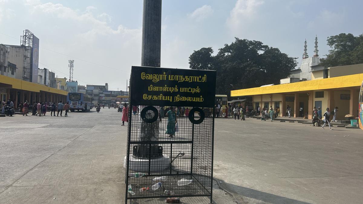 Vellore Corporation installs bins for PET bottle collection in congested areas to reduce plastic waste in Nicholson Canal.